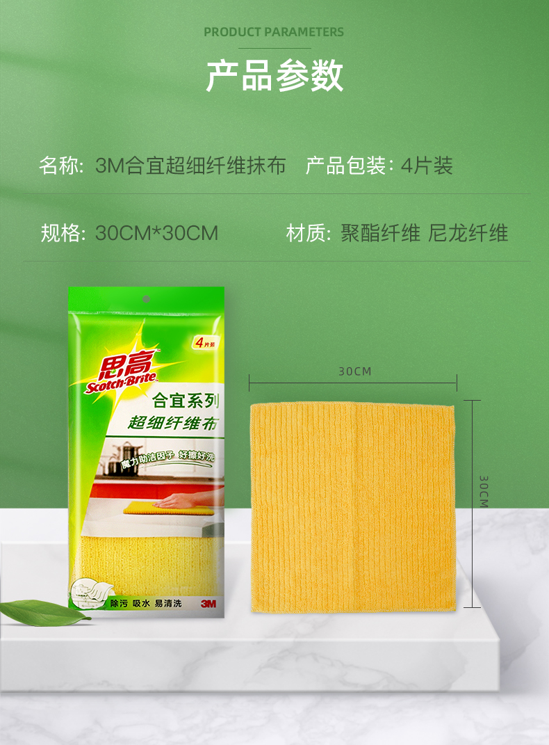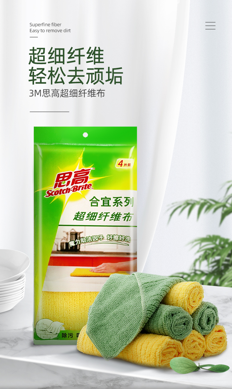 3M 思高合宜系列 多用途柔软抹布 超细纤维清洁布 4片装