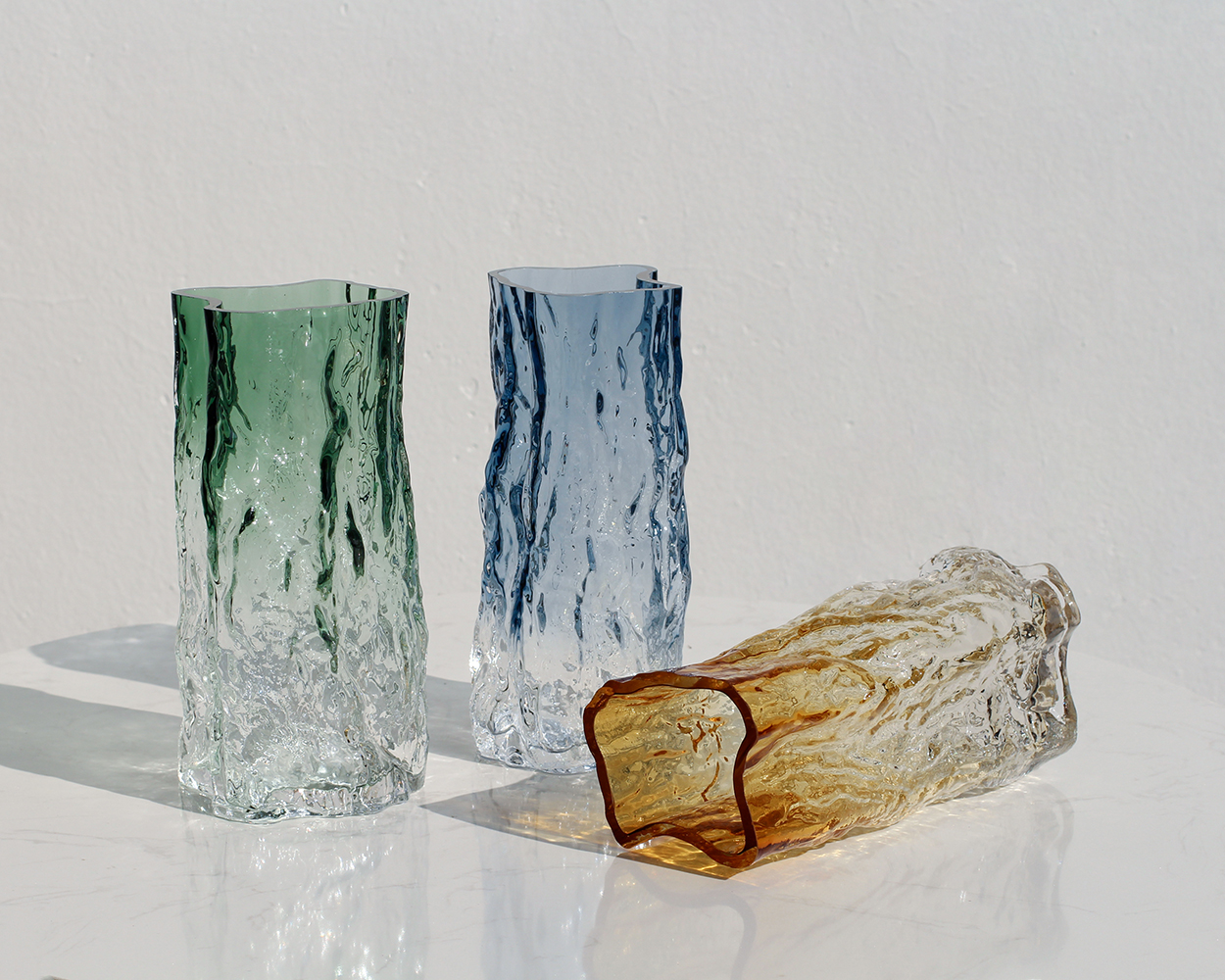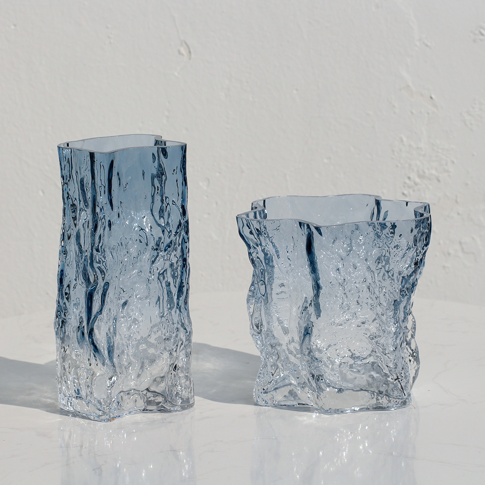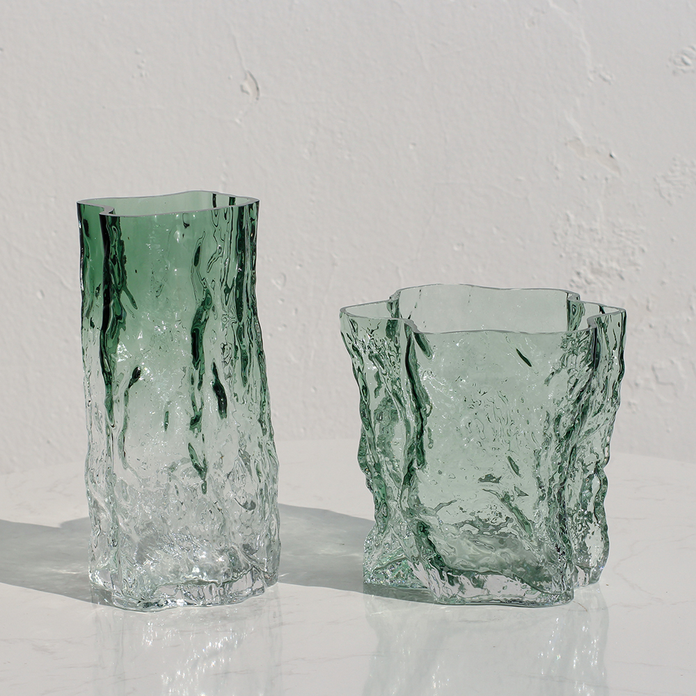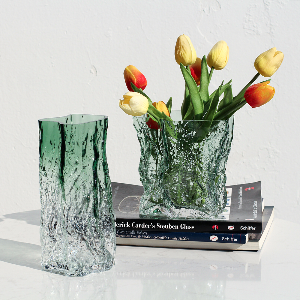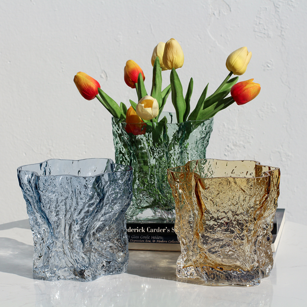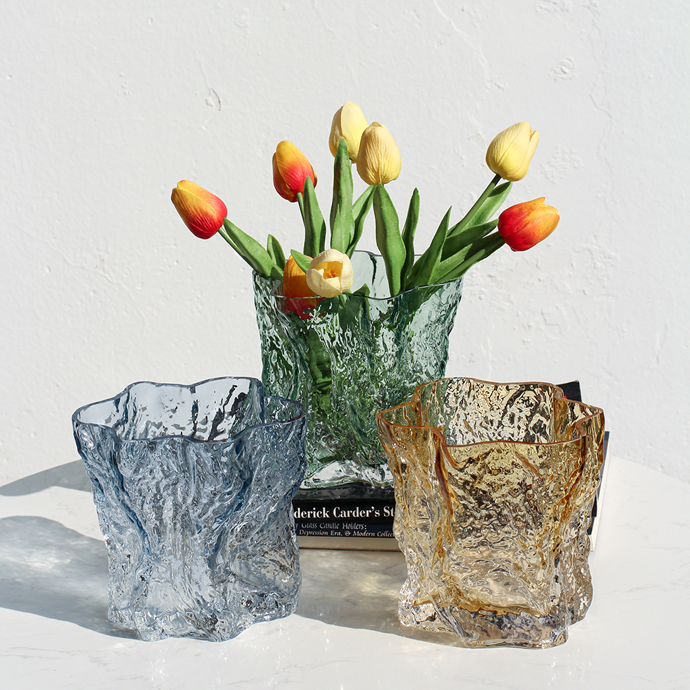 北欧厚重渐变冰川透明玻璃花瓶鲜花绿植客厅餐桌装饰水培简约花瓶