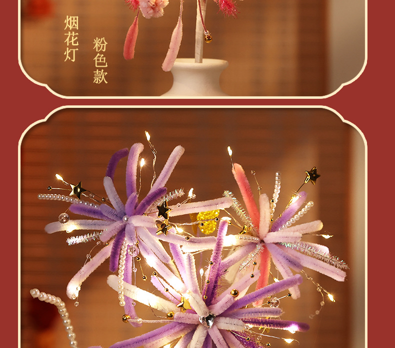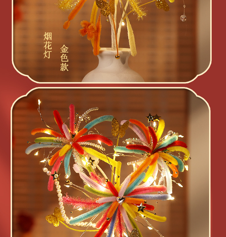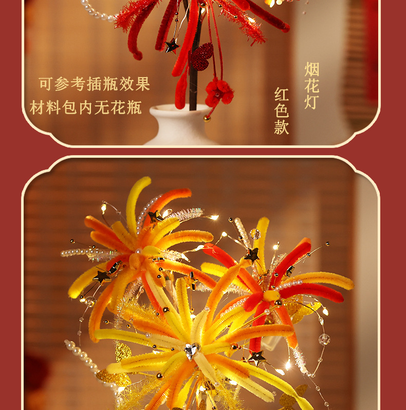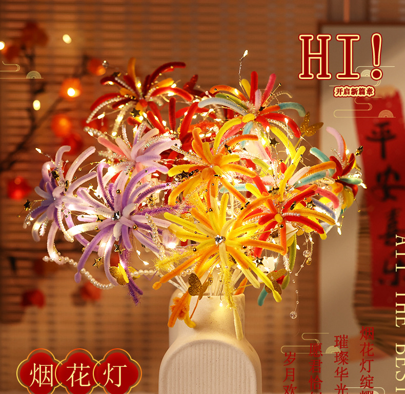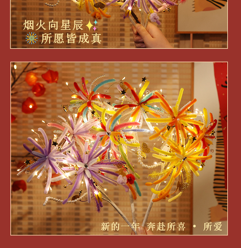 【赠视频教程+2米灯串】新年烟花灯 儿童玩具扭扭棒 手工DIY材料包 春节发光花灯 新的一年奔赴所喜 玩具礼物