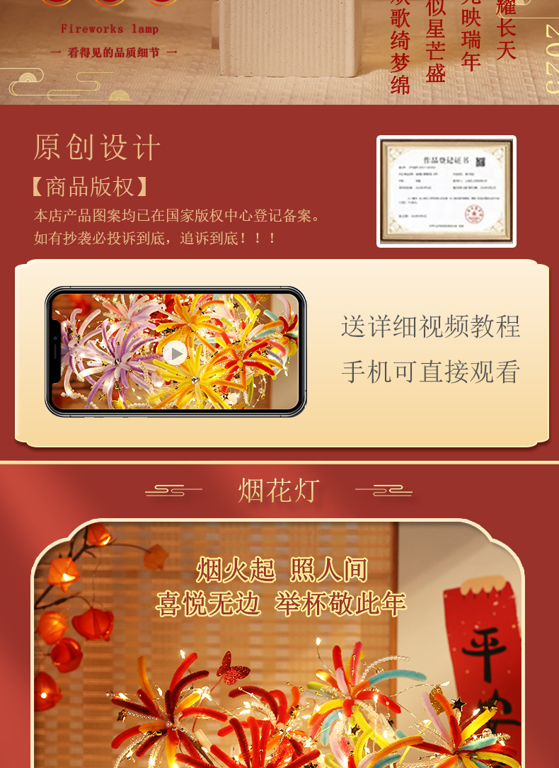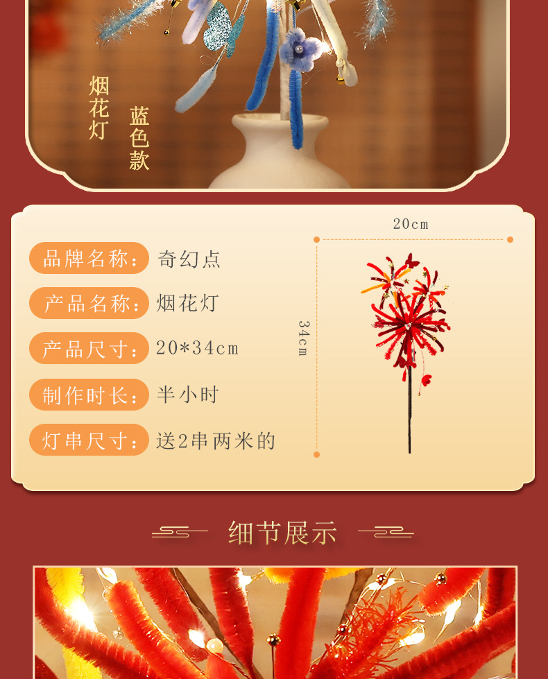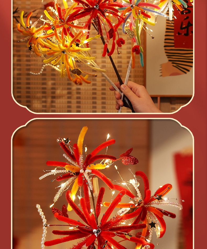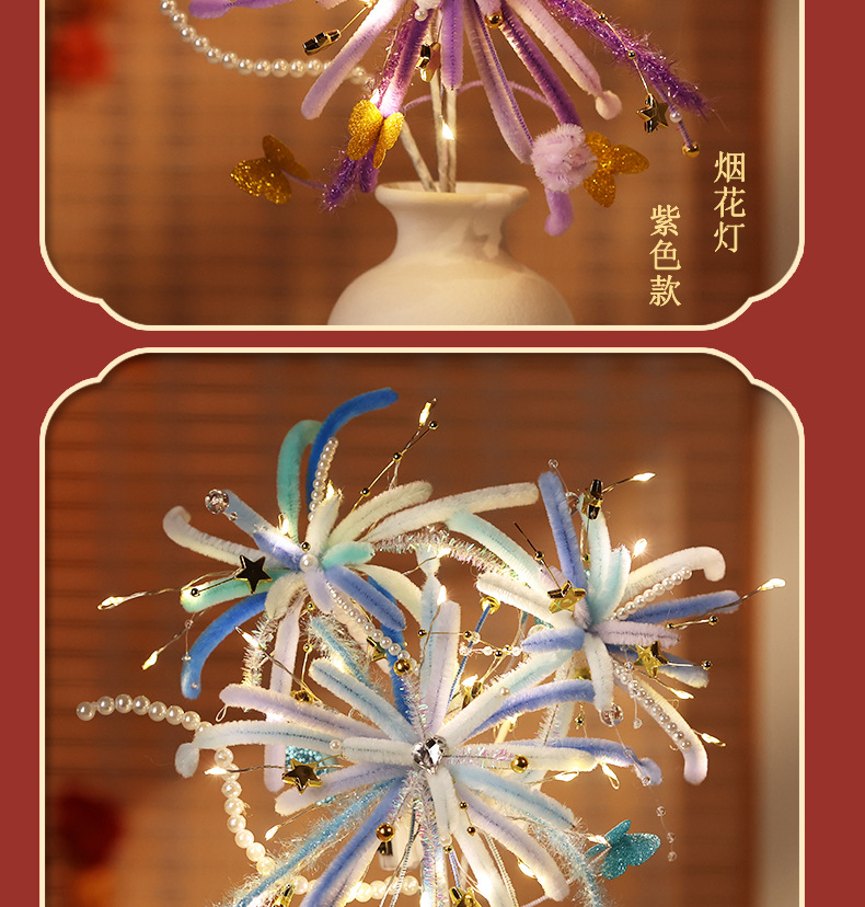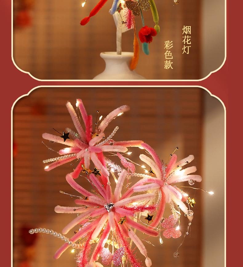 【赠视频教程+2米灯串】新年烟花灯 儿童玩具扭扭棒 手工DIY材料包 春节发光花灯 新的一年奔赴所喜 玩具礼物