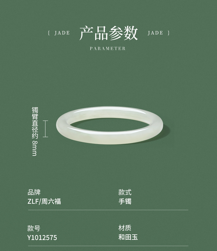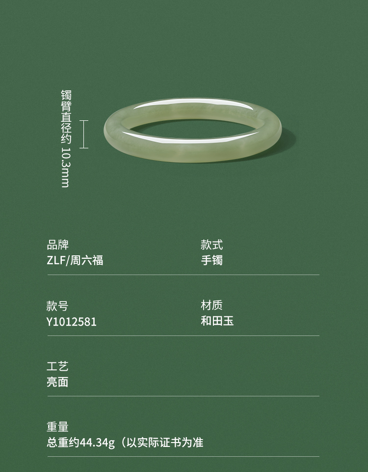 周六福和田玉手镯女显白和田青玉福镯手饰温婉美玉镯