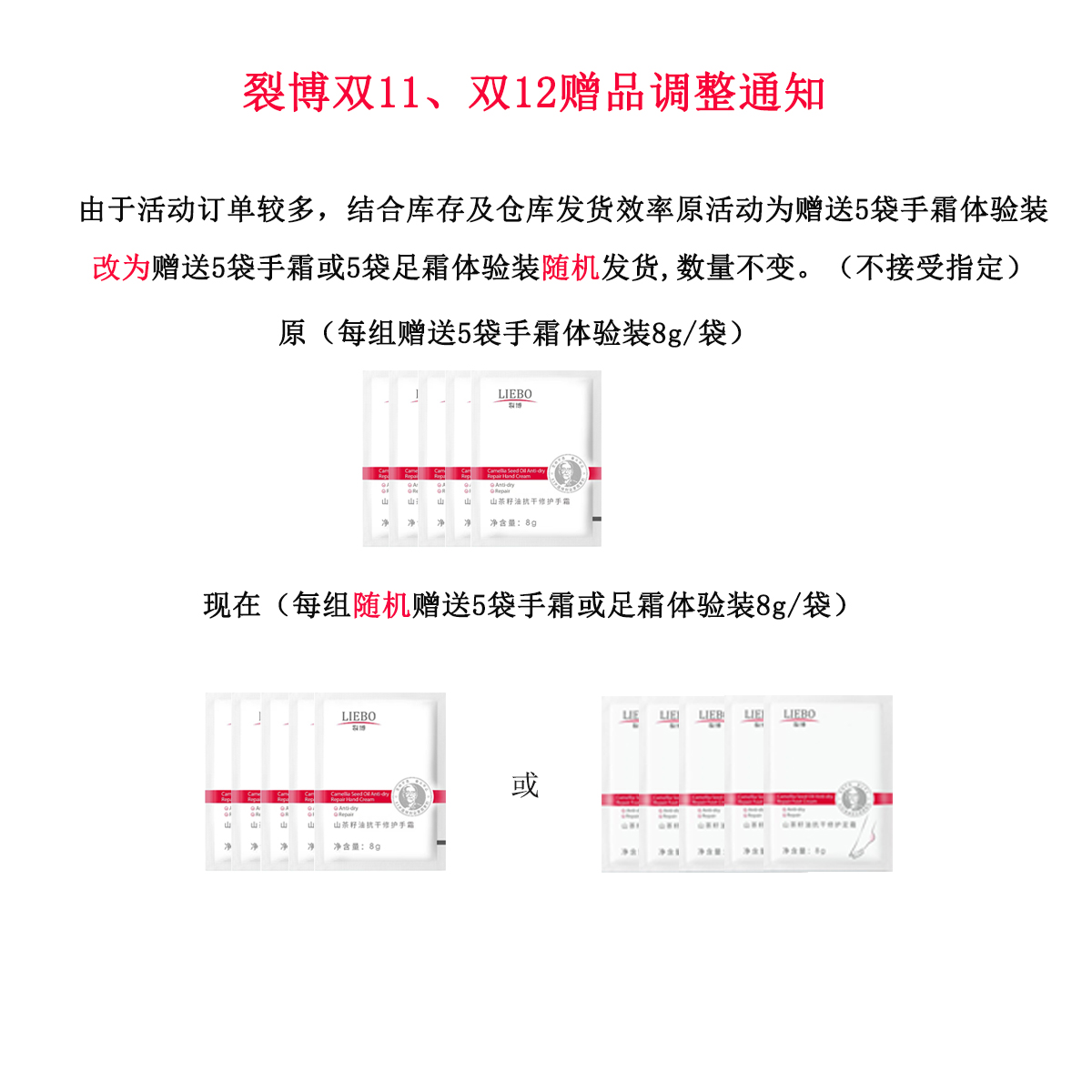温馨提示: 赠品手霜、足霜小样随机发,不接受指定