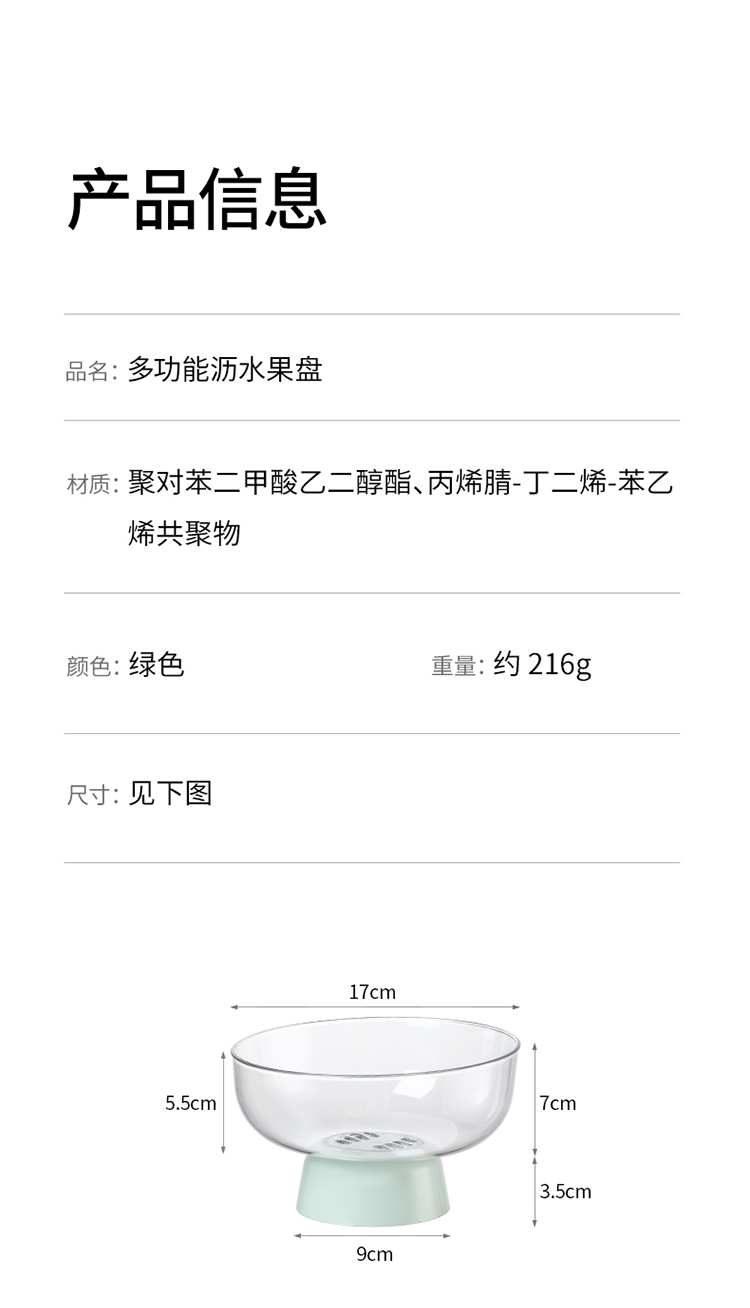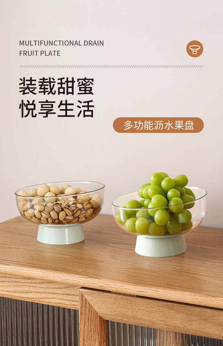 FaSoLa多功能沥水果盘高脚水果盘点心盘塑料托盘干果糖果零食盘子