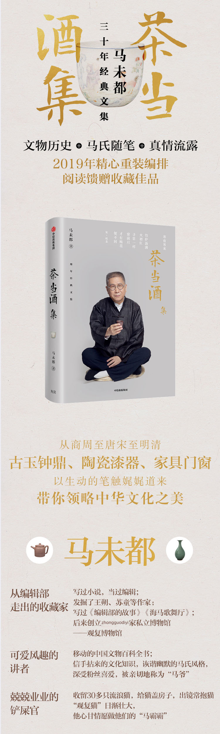 《茶当酒集》是收藏名家马未先生三十年经典随笔,超有诚意的马氏文字。书中内容涉及广泛,包括文物历史类的专业性的文章、有感而发的随笔文章,以及真情流露的怀念性文章。在作者笔下,原本深奥晦涩的专业知识,变得通俗易懂,富有趣味性。无论涉及哪方面的文章,均能带给阅读者不同程度的启迪。2019年精心再版编排,适合读者阅读馈赠收藏。