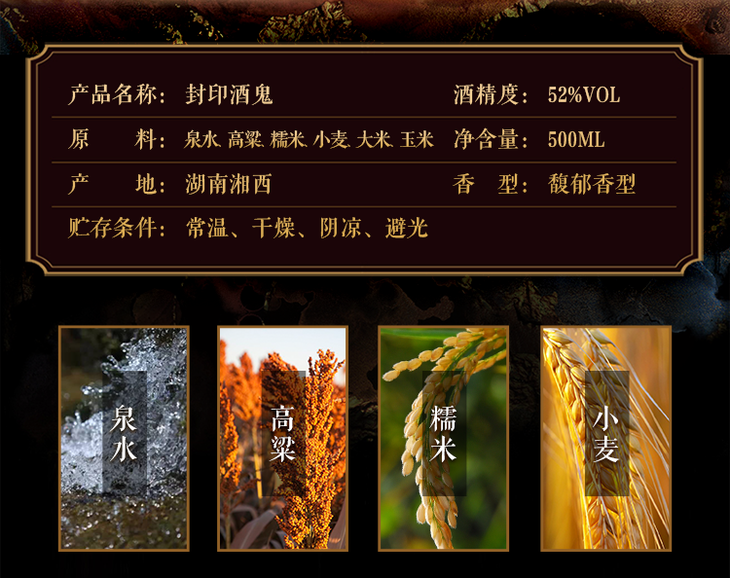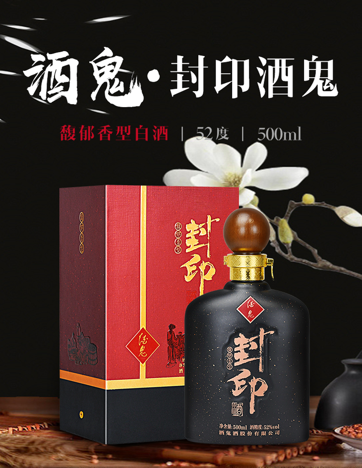 酒鬼酒 封印酒鬼52度500ml单瓶装馥郁香型国产白酒