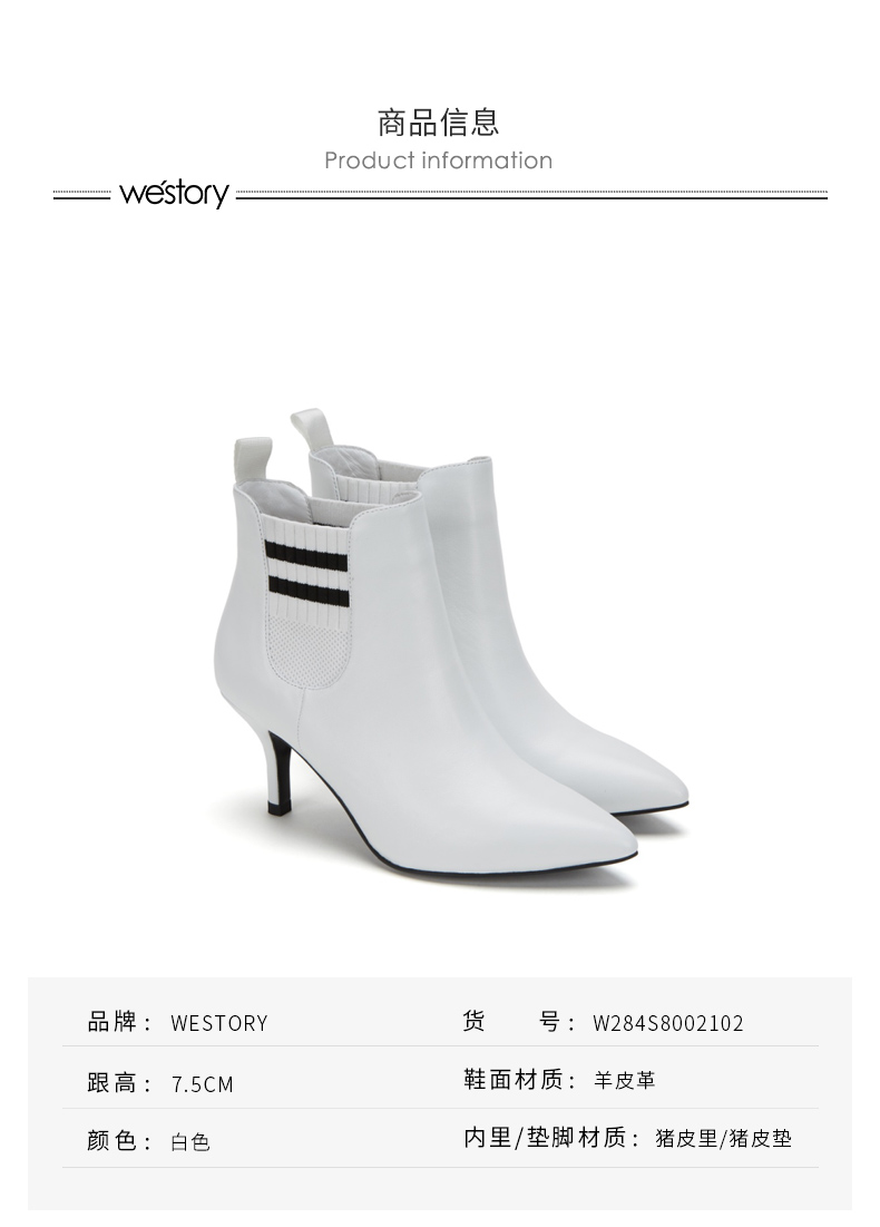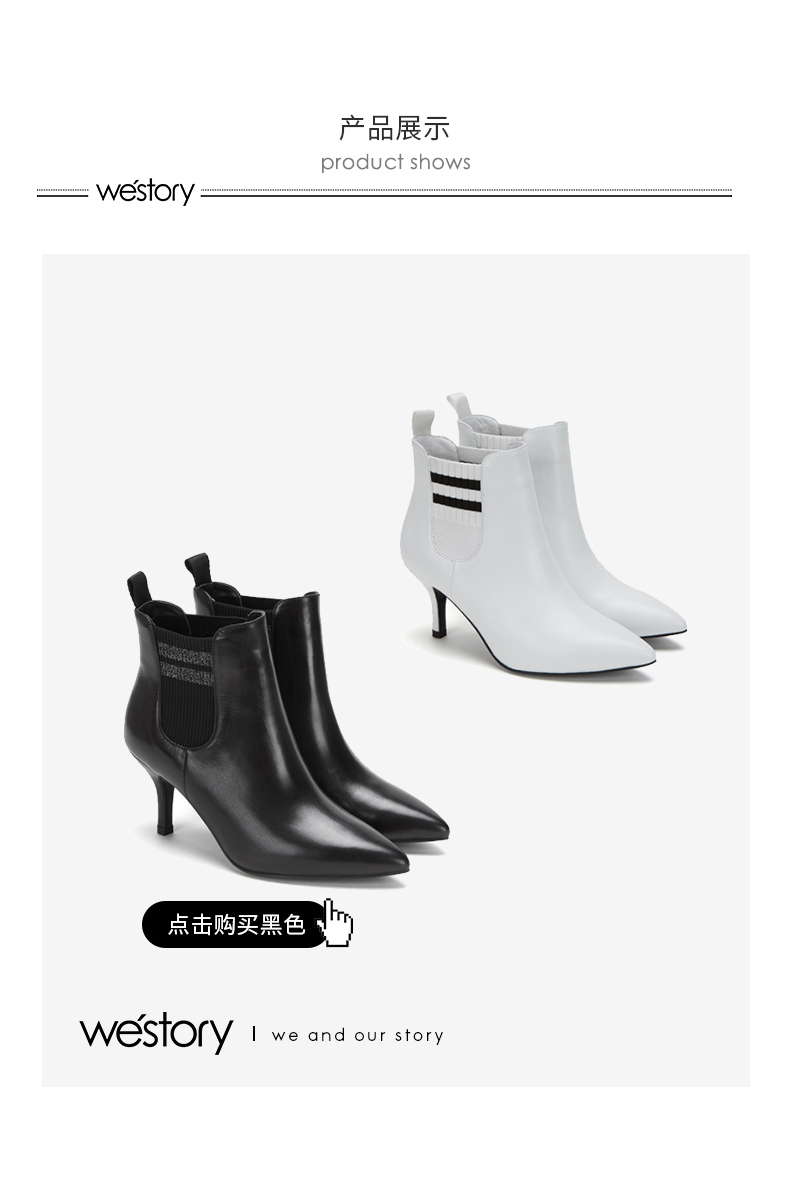 westory2018年秋冬新款短靴皮面切尔西尖头女鞋高跟鞋W284S80021