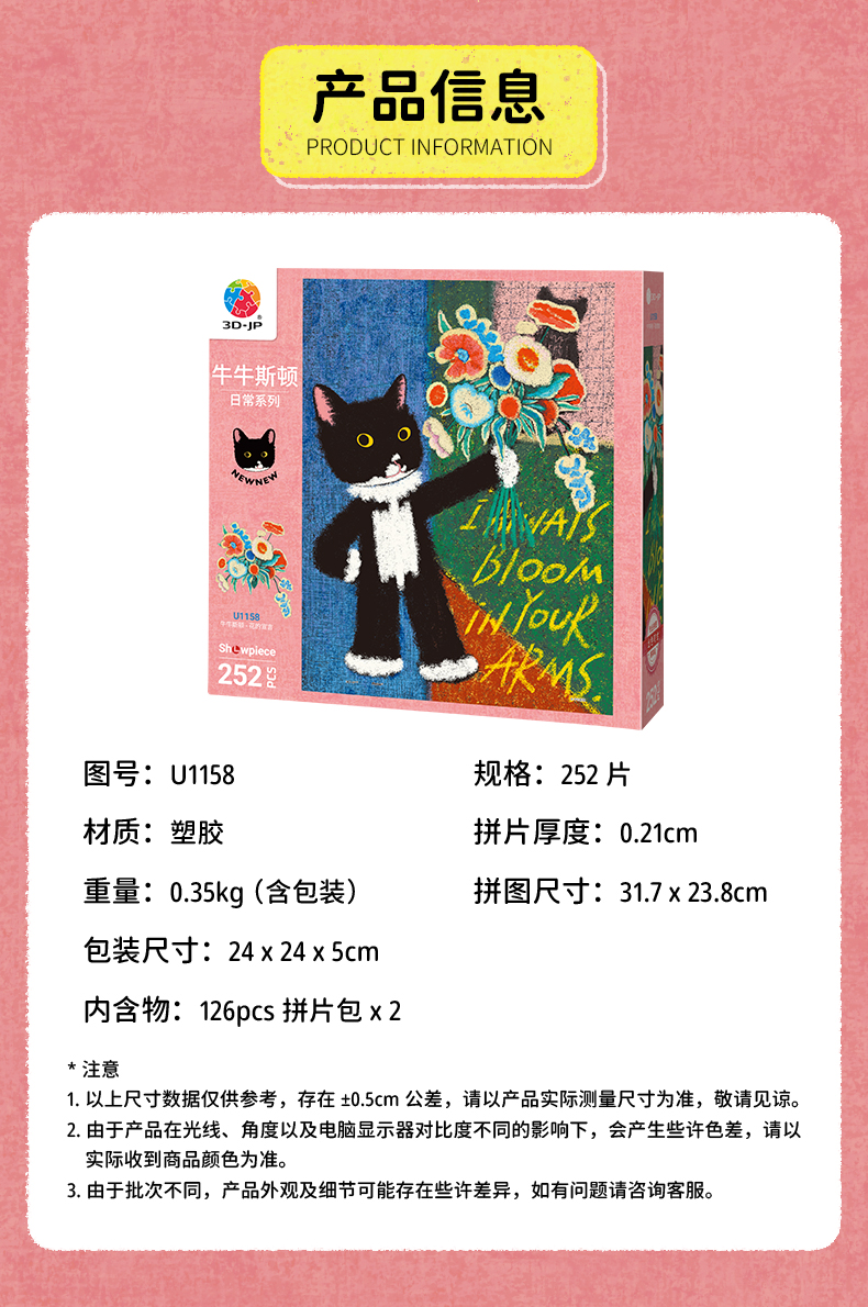 252片 平面塑料拼图 U1158 牛牛斯顿-日常系列-花的宣言【Showpiece L】