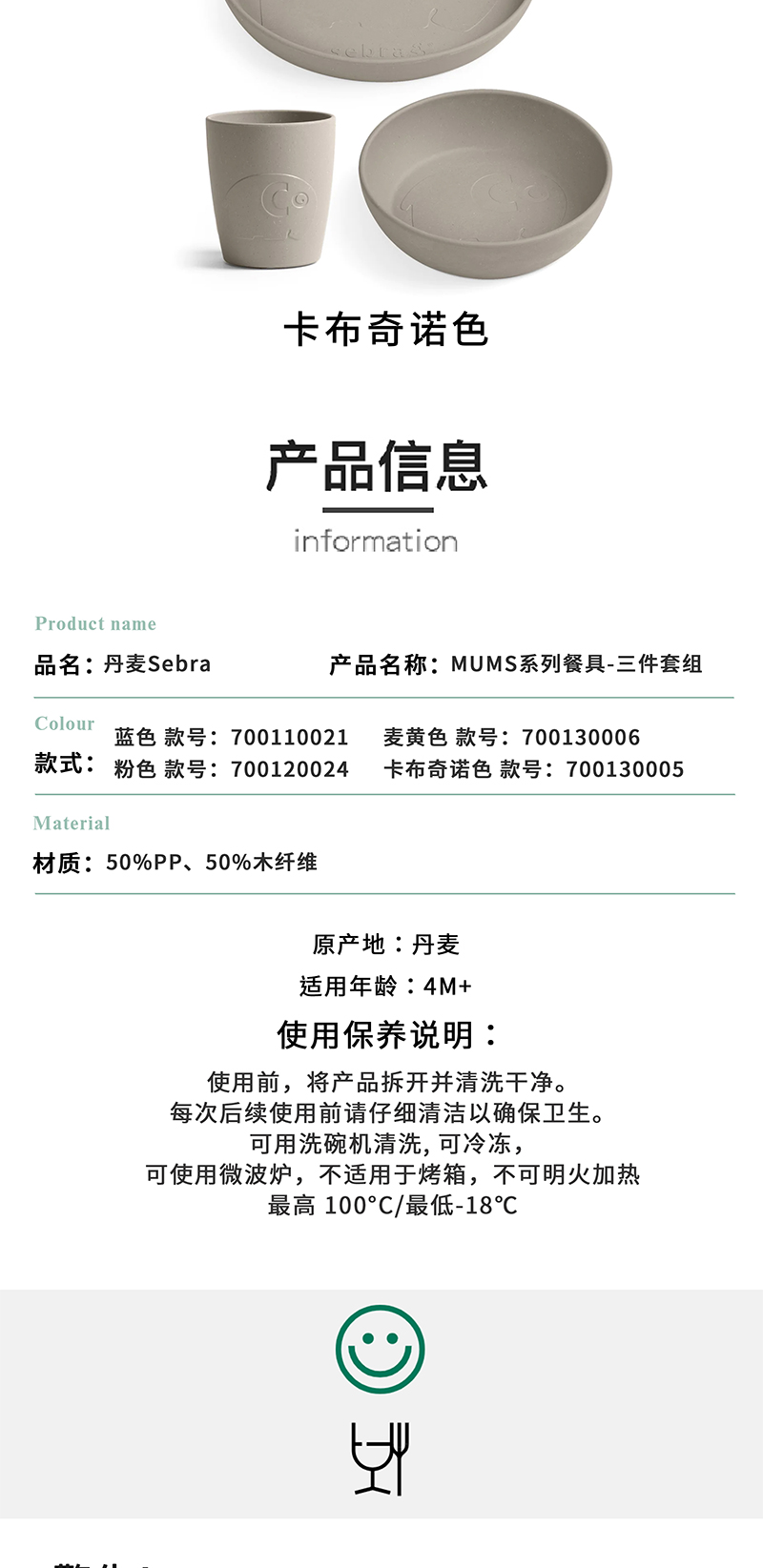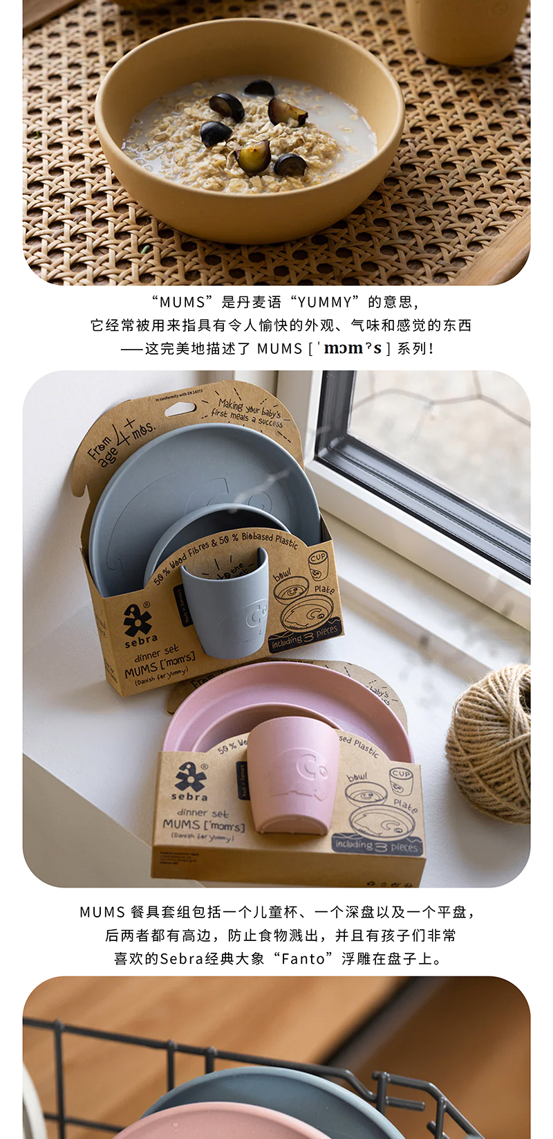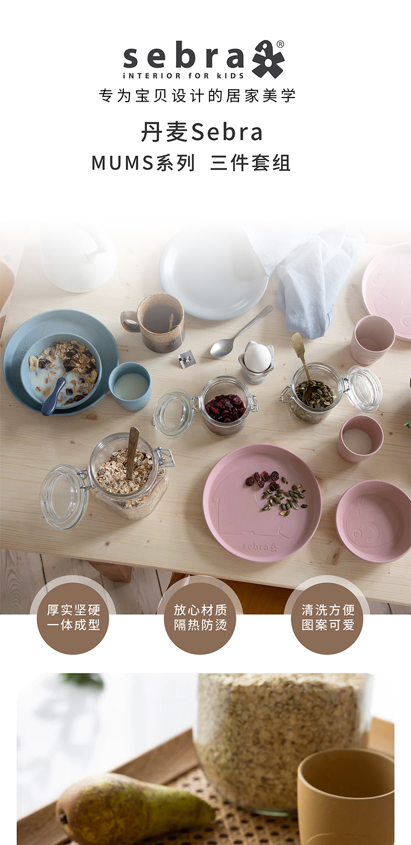 Sebra MUMS系列-三件套组 婴幼儿耐摔餐具水杯分格盘餐碗4月+