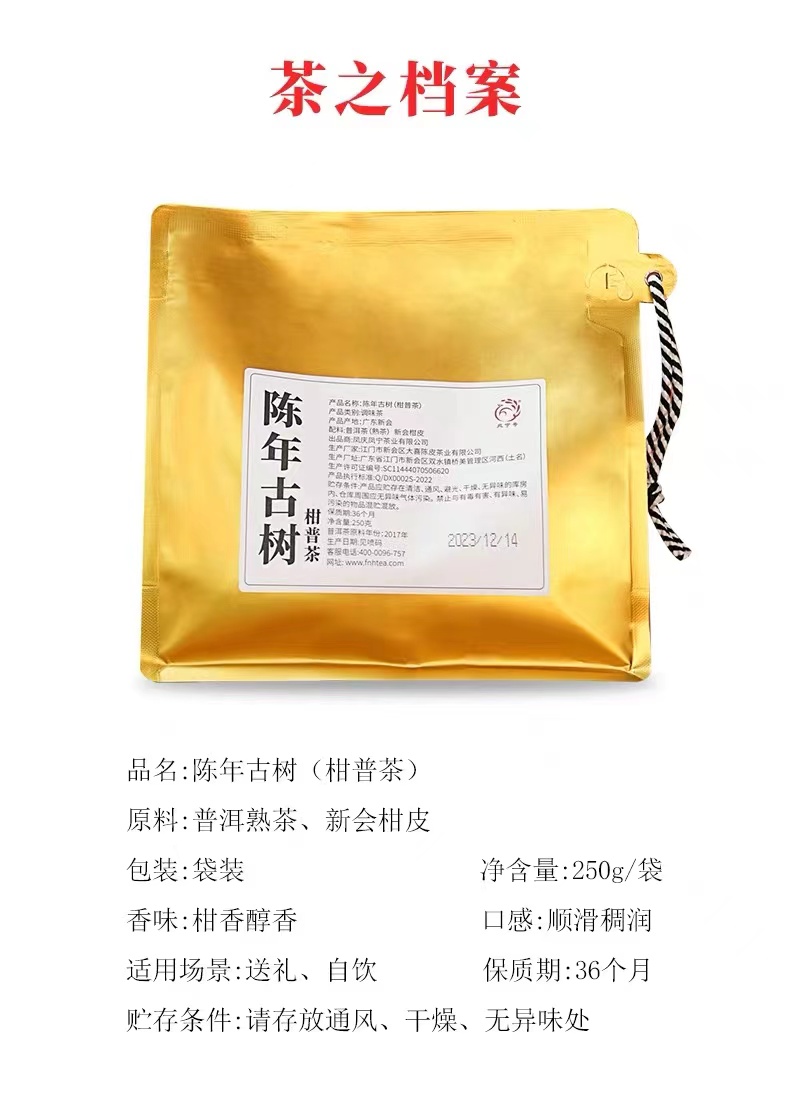 柑普茶 | 凤宁号 2023年 陈年古树 大红柑 +古树熟普 柑普茶 250g /袋