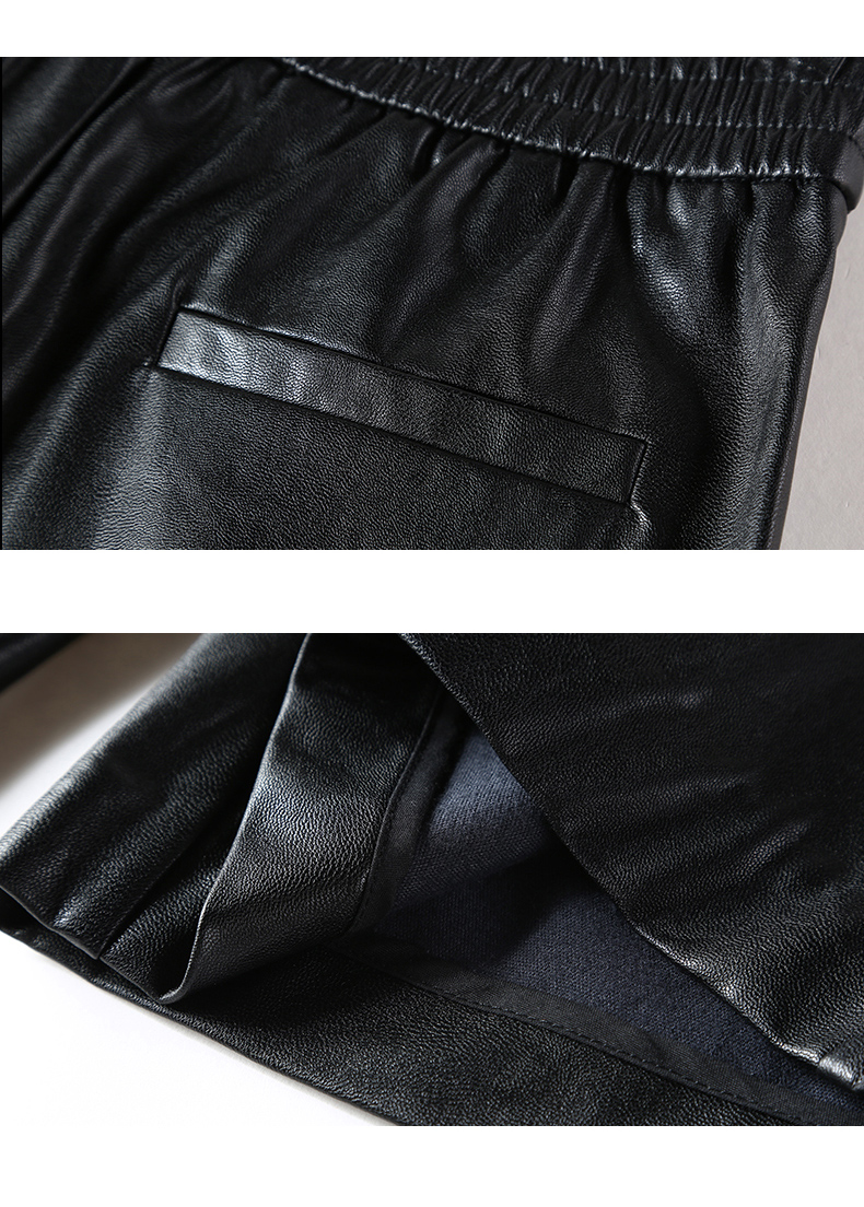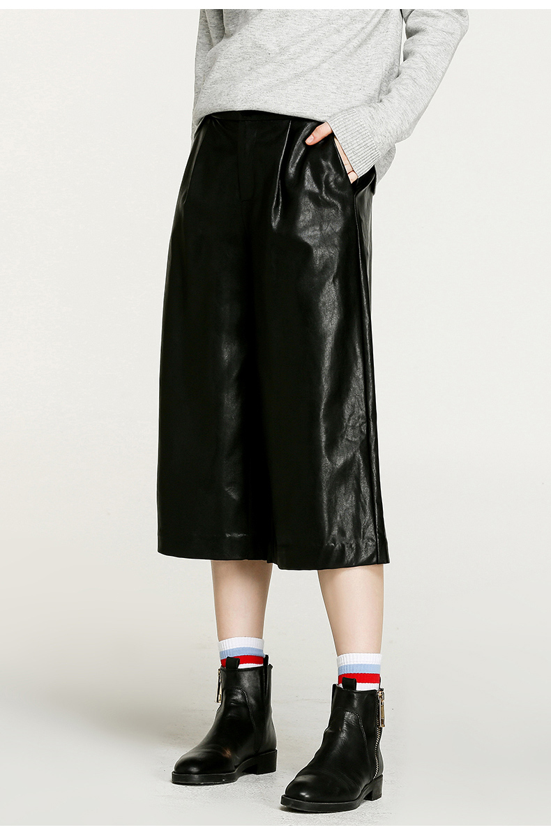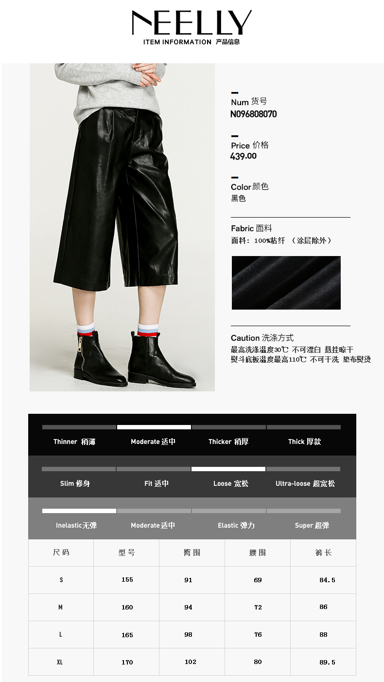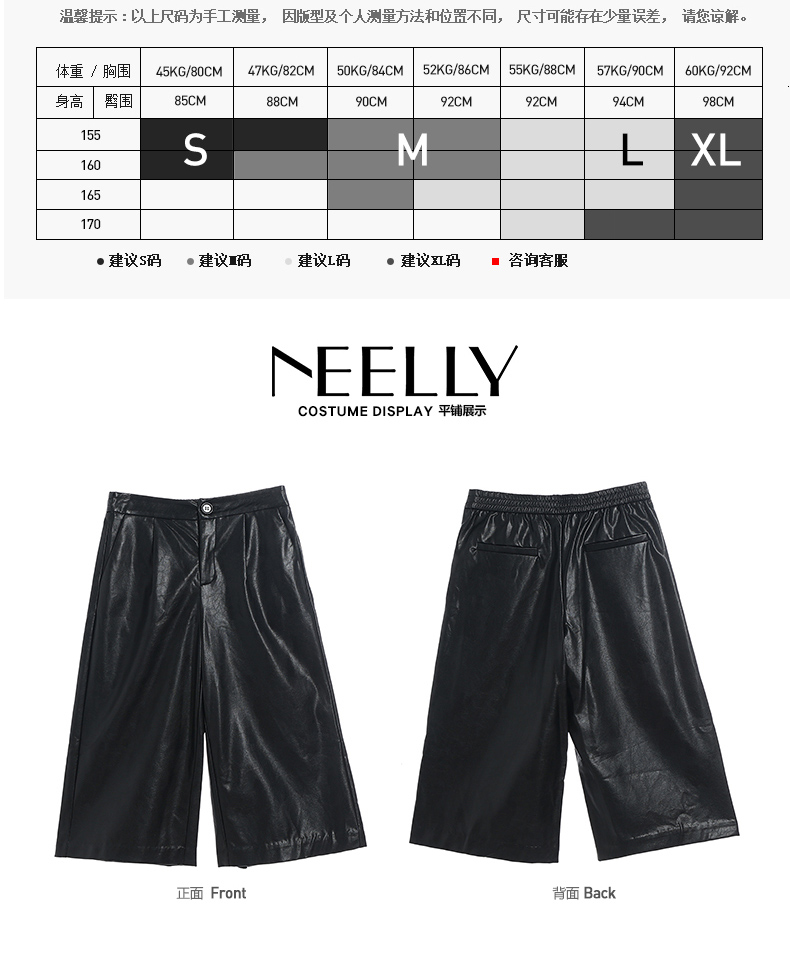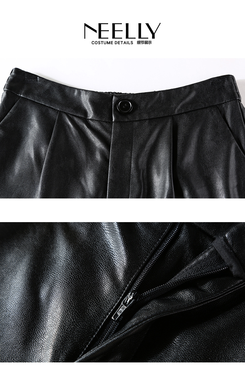 NEELLY/纳俪女街头黑色朋克休闲PU自然腰皮裤子七分裤N096808070