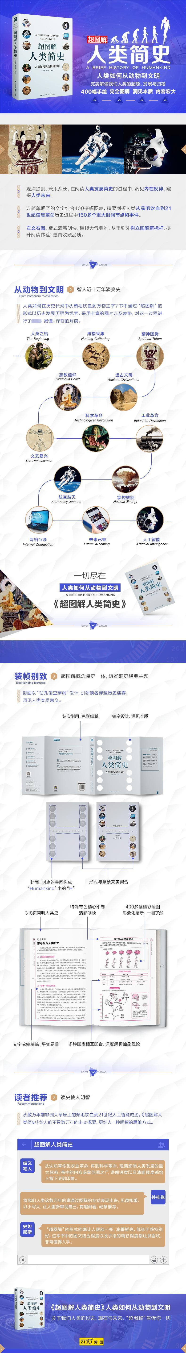 王宇琨、董志道编著的《超图解人类简史(人类如何从动物到文明)》以简单明了的文字结合400多幅图表完美剖析人类从茹毛饮血到21世纪信息革命历史进程中的重大事件节点,对人类的融合统一以及认知革命、农业革命和科技革命的发展脉络抽丝剥茧,深挖人类文化、科学、政治以及经济等内在本质与未来走向,是一部博物学、历史学的集大成之作。