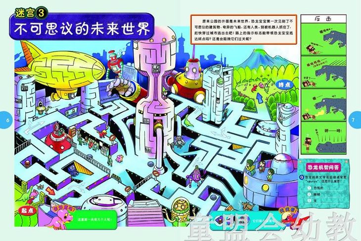 《恐龙王国:迷宫大冒险》是我社出版的启发精选益智游戏丛书之一,适合2岁以上儿童阅读。这是一本集趣味性、知识性于一体的迷宫游戏书。日本知名漫画家有贺等倾力创作,将丰富的恐龙知识融入好玩的纸上迷宫,佐以幽默诙谐的分格漫画、知识小测验,让孩子在快乐游戏中学习三角龙、厚头龙、霸王龙等恐龙知识。绘本内容轻松有趣、图文并茂,是一本适合亲子游戏、乐趣多多的绘本。