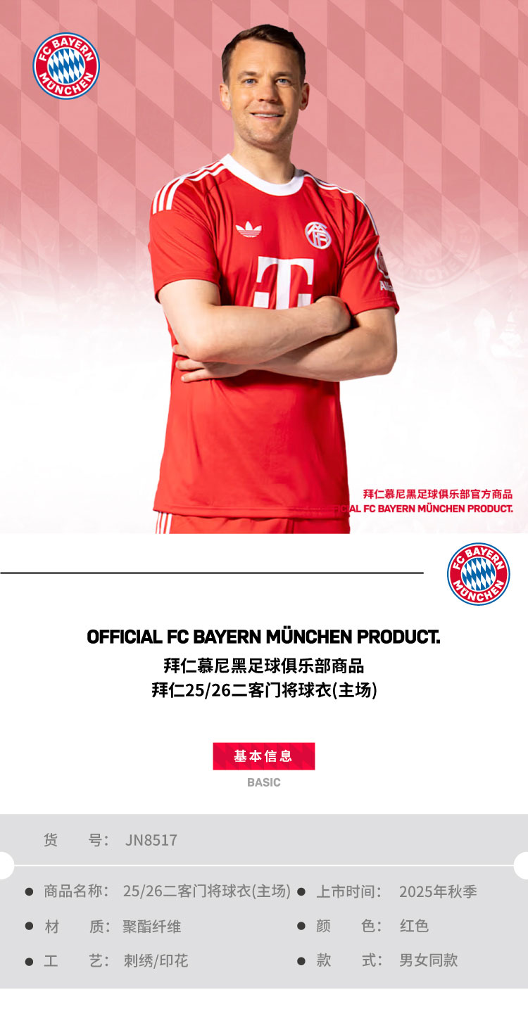 【官网同款】拜仁足球俱乐部丨25-26赛季门将球衣主场门将服