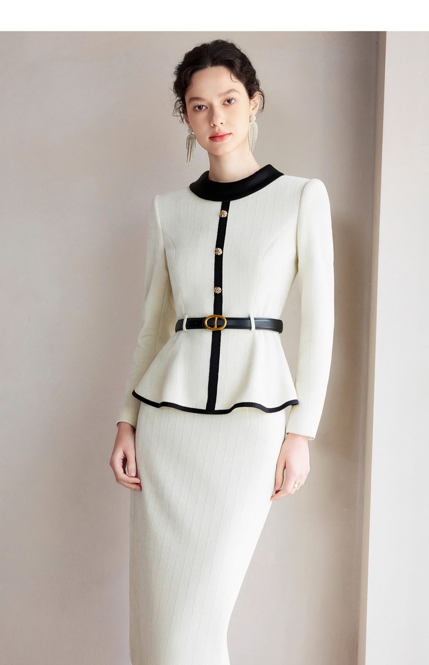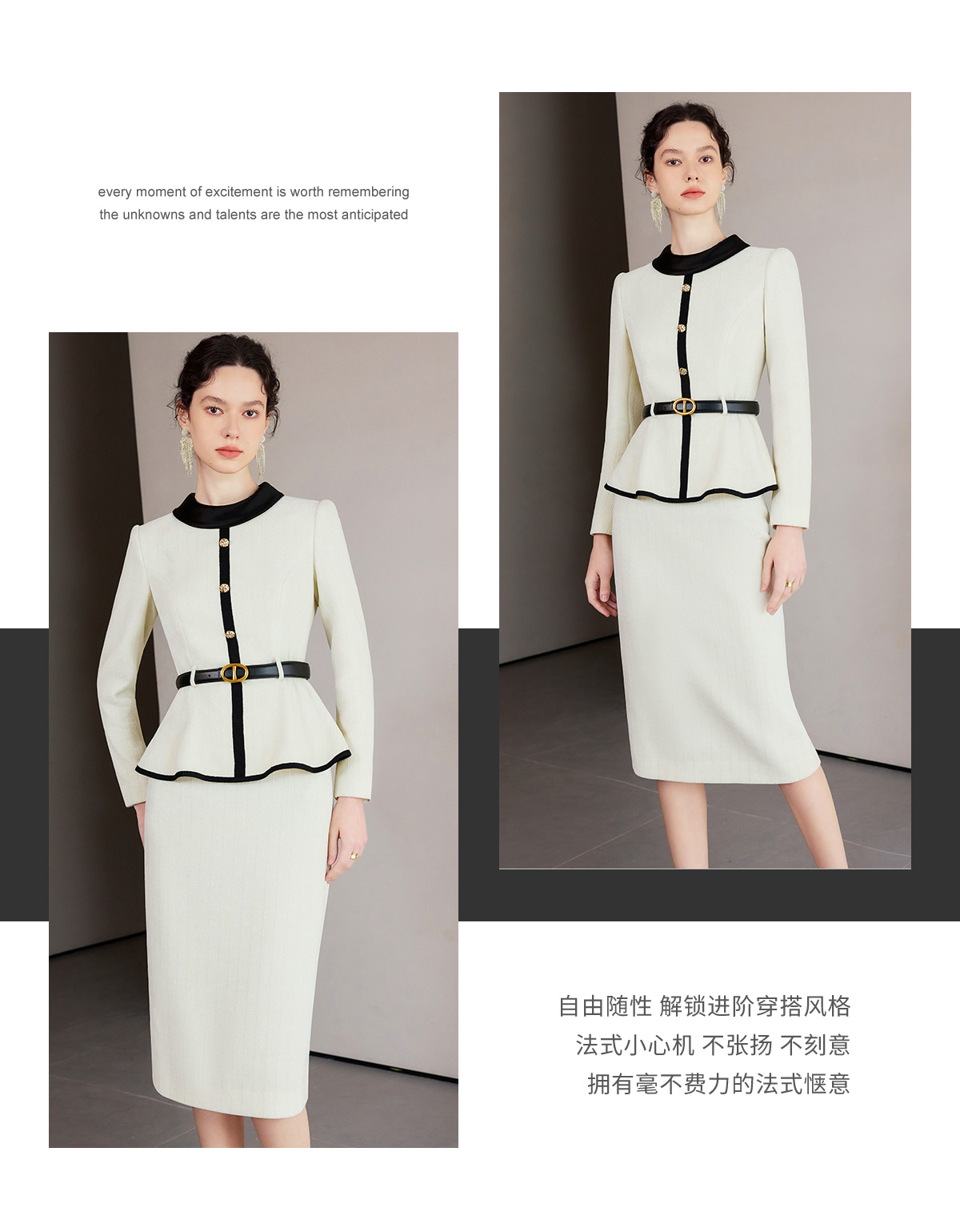 IWY/春季商务小香风半裙两件套正装肌理感套装新款轻奢高级西装职业气质两件套CS2171