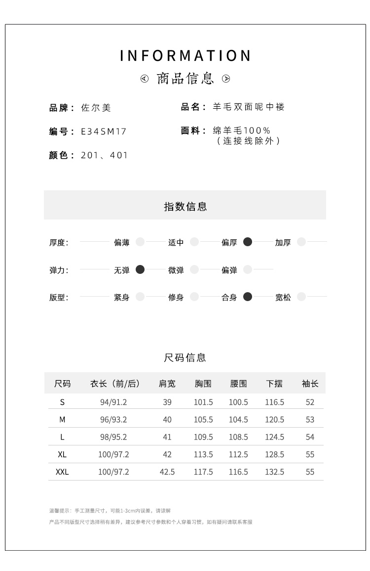 佐尔美冬季新款 气质双面呢套装100%绵羊毛双面呢女E34SM17