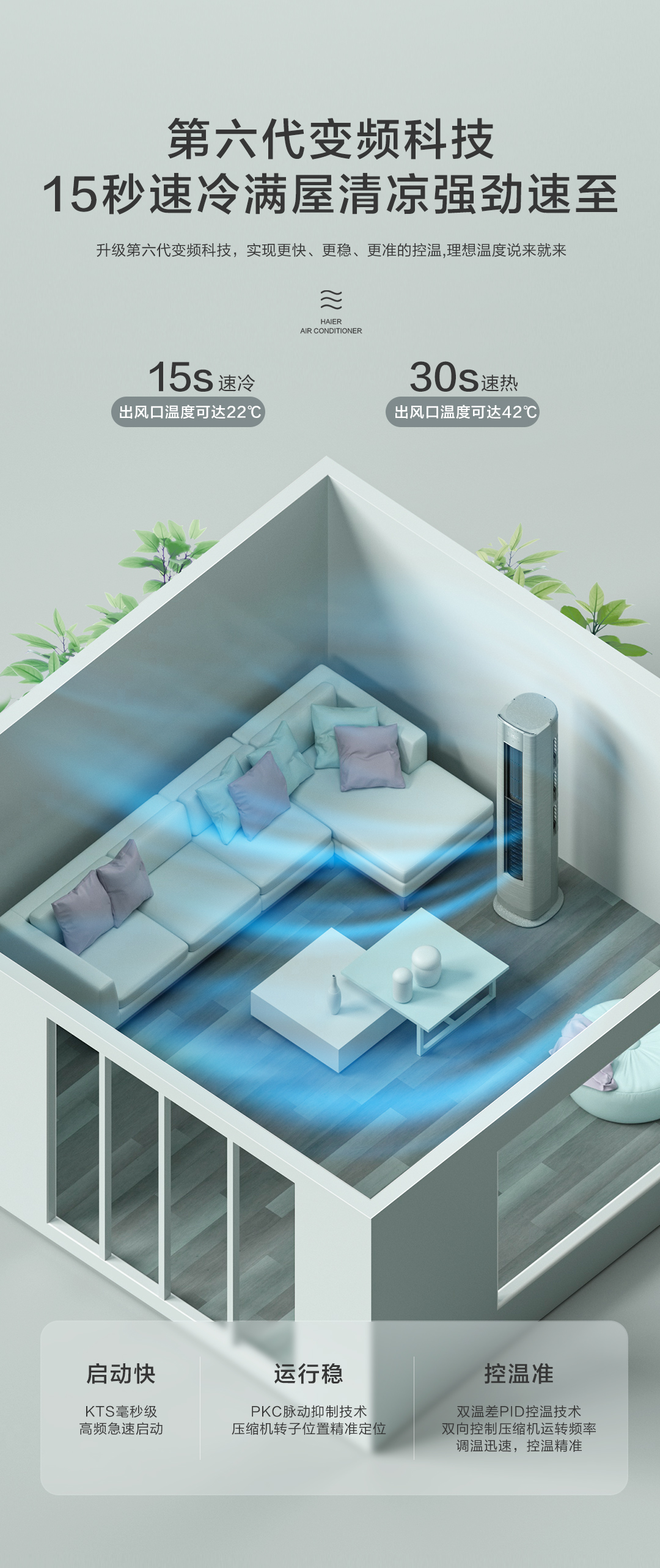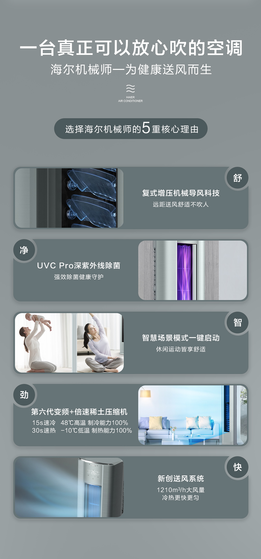 海尔新一级能效 2匹 京馨 变频冷暖 客厅空调立式柜机 紫外线除菌 KFR-50LW/28EAA81U1