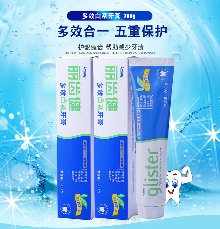 【安利牙膏】安利丽齿健多效牙膏200g 去烟渍黄口气清新按压式白茶牙膏薄荷
