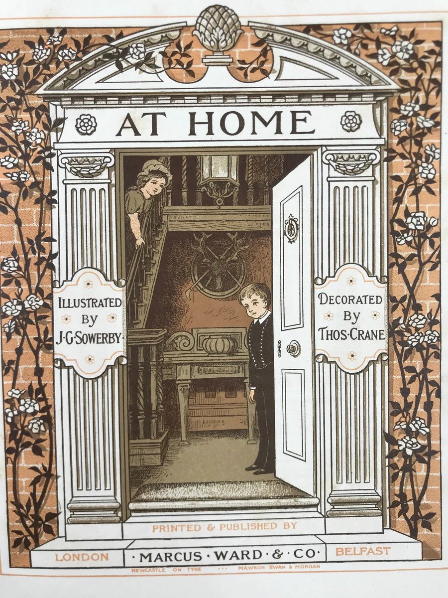 约20世纪早期 托马斯·克兰设计超美书页《在家中》 配多幅彩色插图 布脊精装大32开