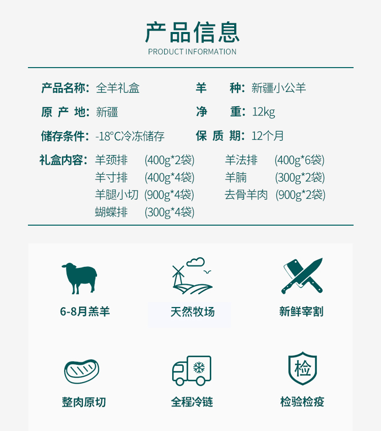 天莱小公羊 国产新疆羊肉 全羊礼盒12kg