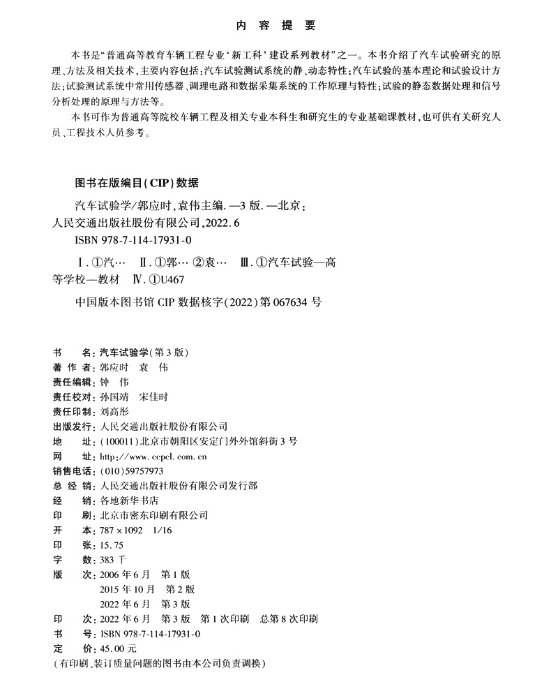 书名:汽车试验学(第3版)