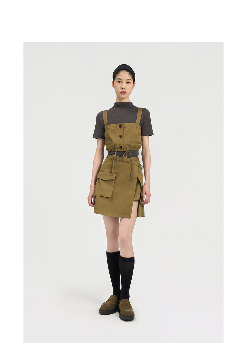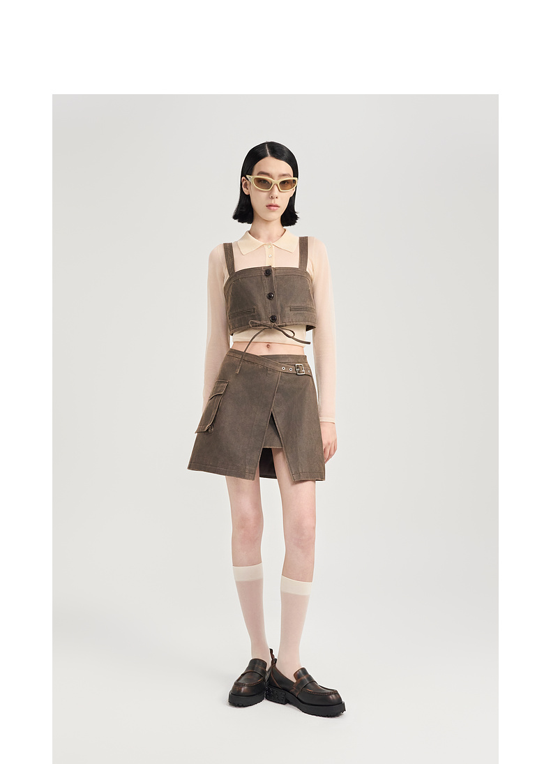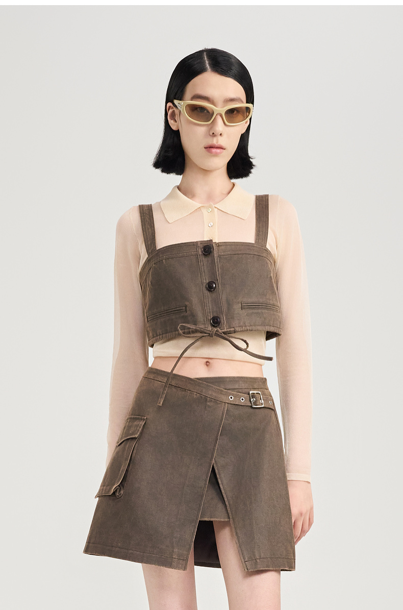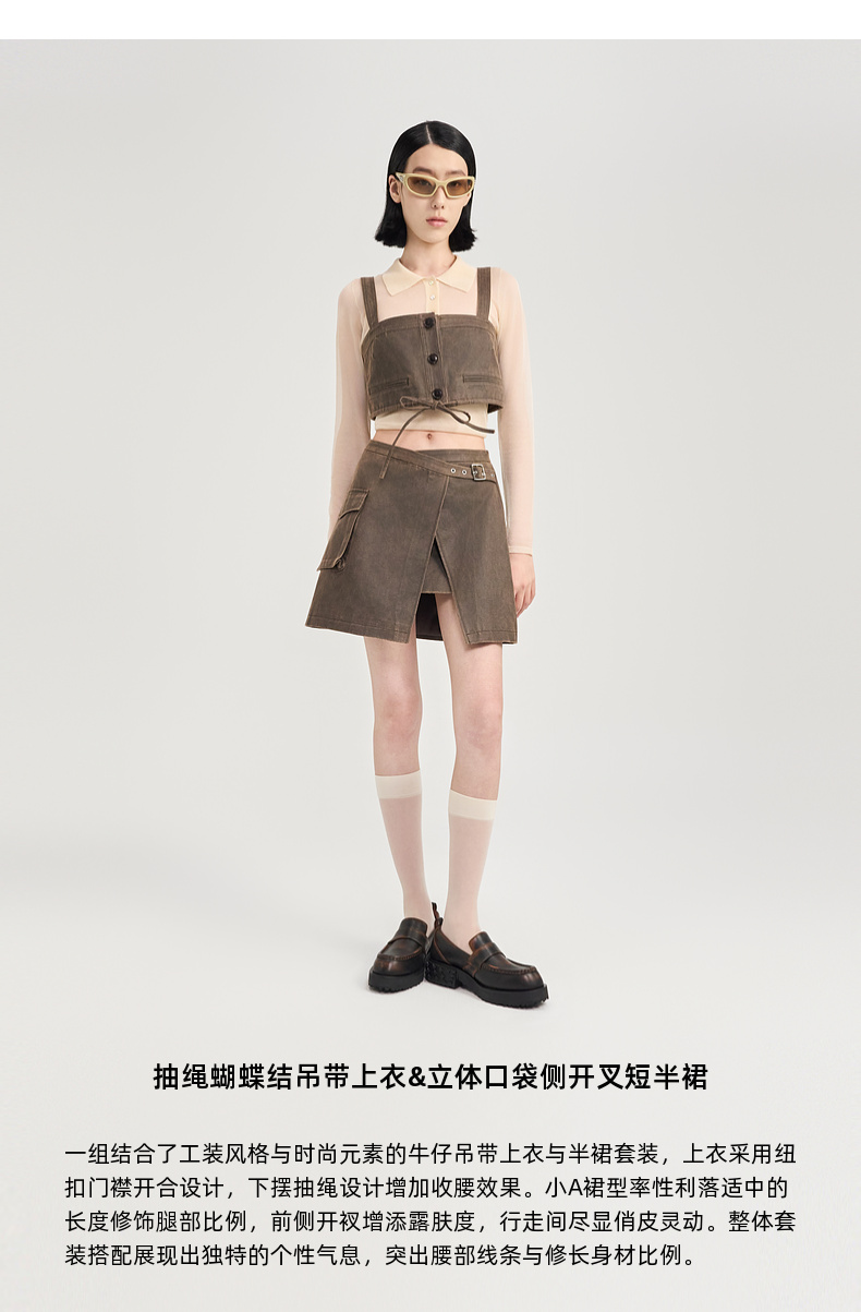 [捡漏价]lost in echo2024秋季新款工装休闲背心吊带蝴蝶结开衩短半裙套装