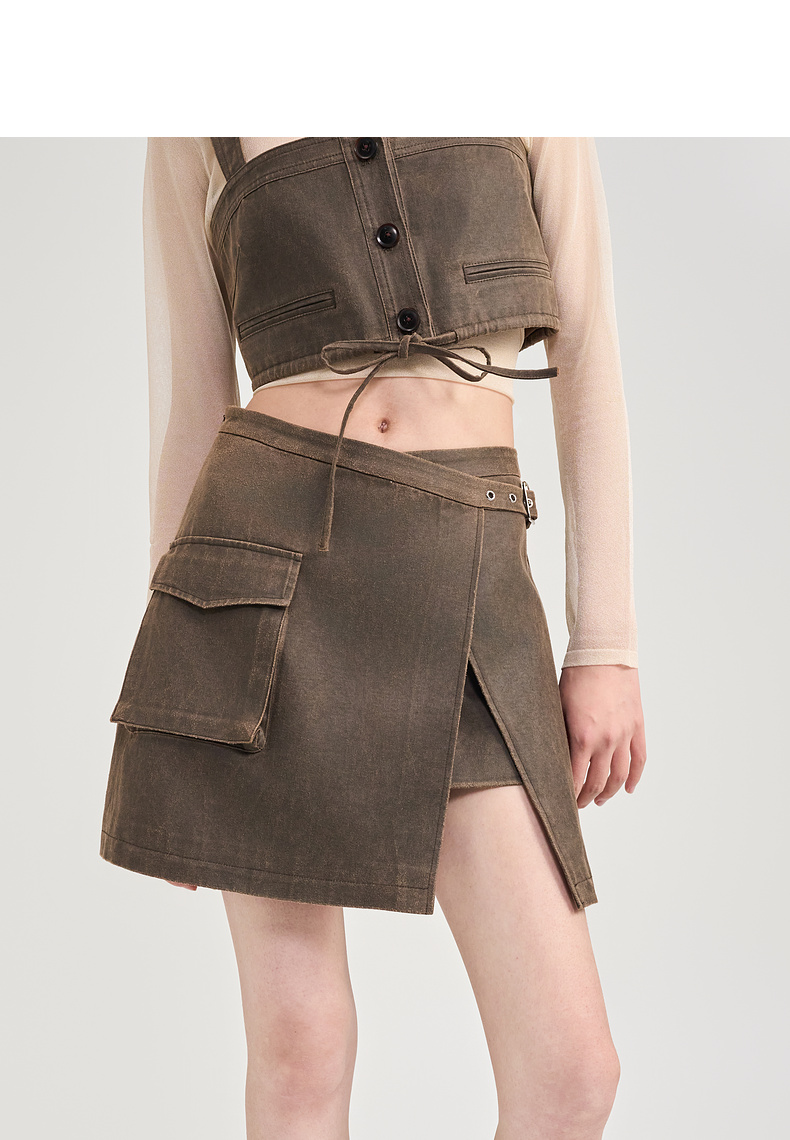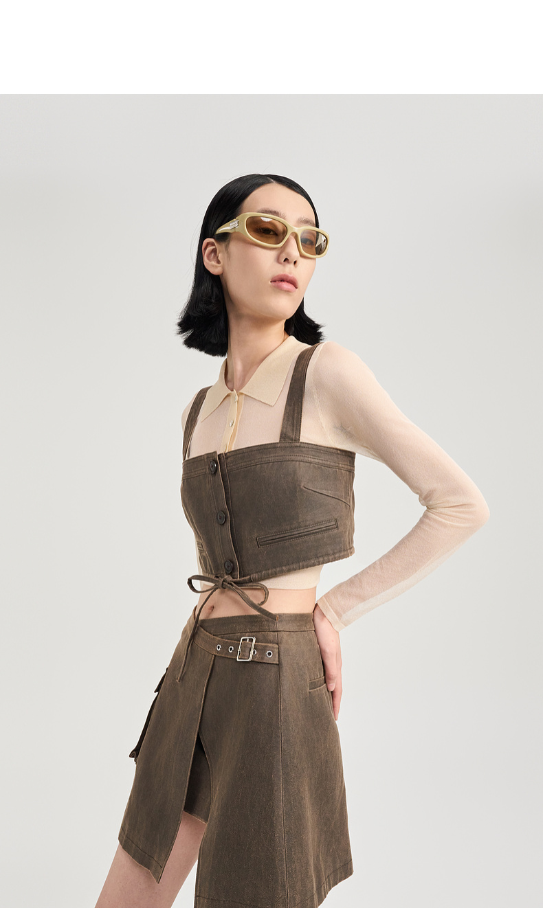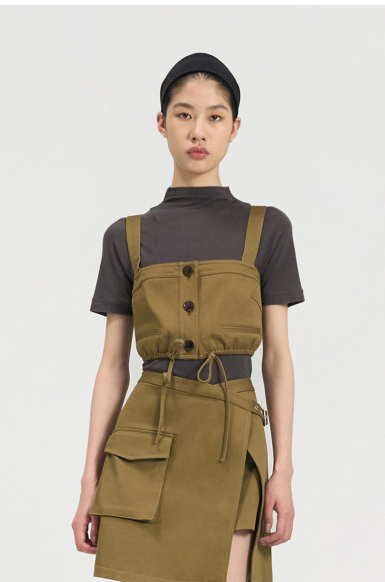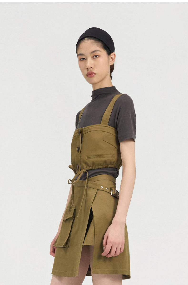 [捡漏价]lost in echo2024秋季新款工装休闲背心吊带蝴蝶结开衩短半裙套装