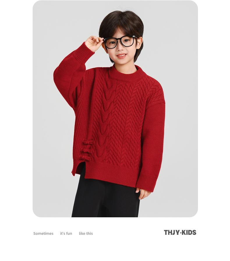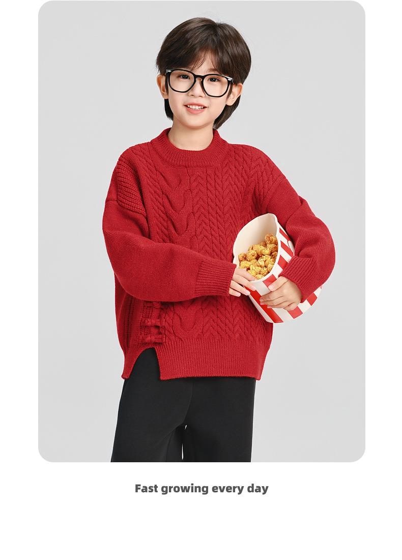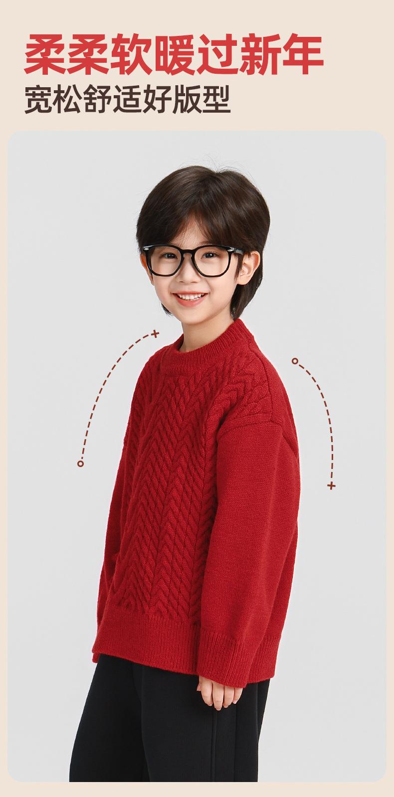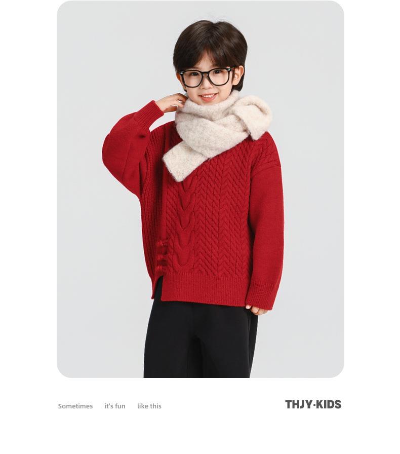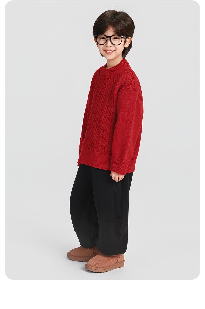 男童加厚毛衣2025冬装新款秋冬款儿童男孩圆领蓬松加厚保暖打底衫