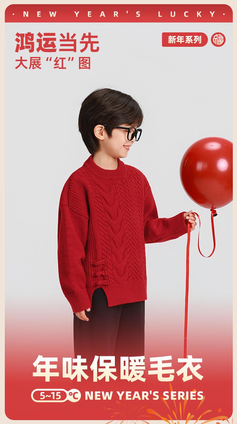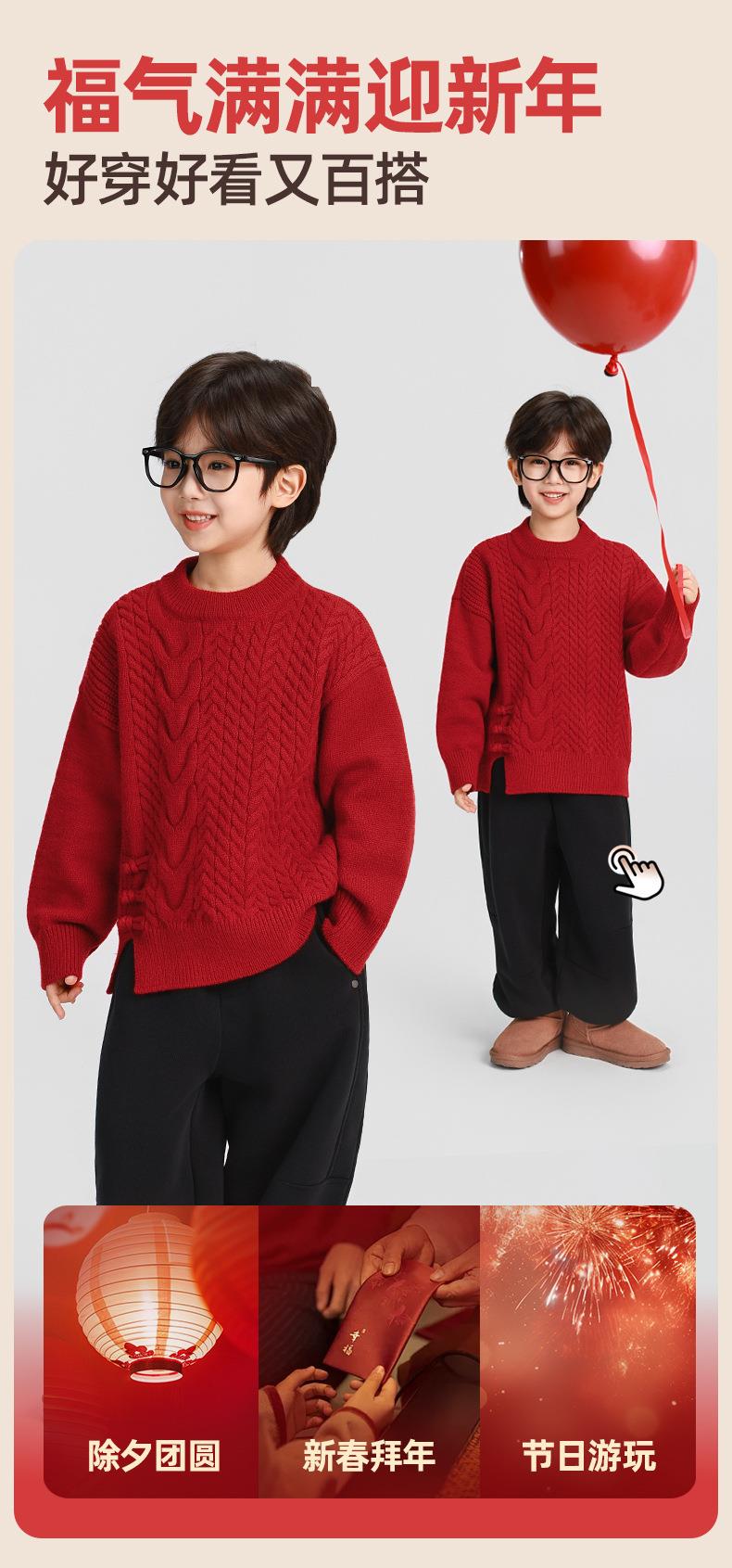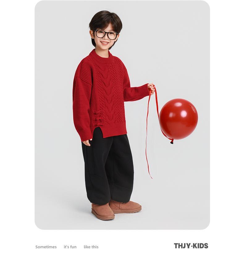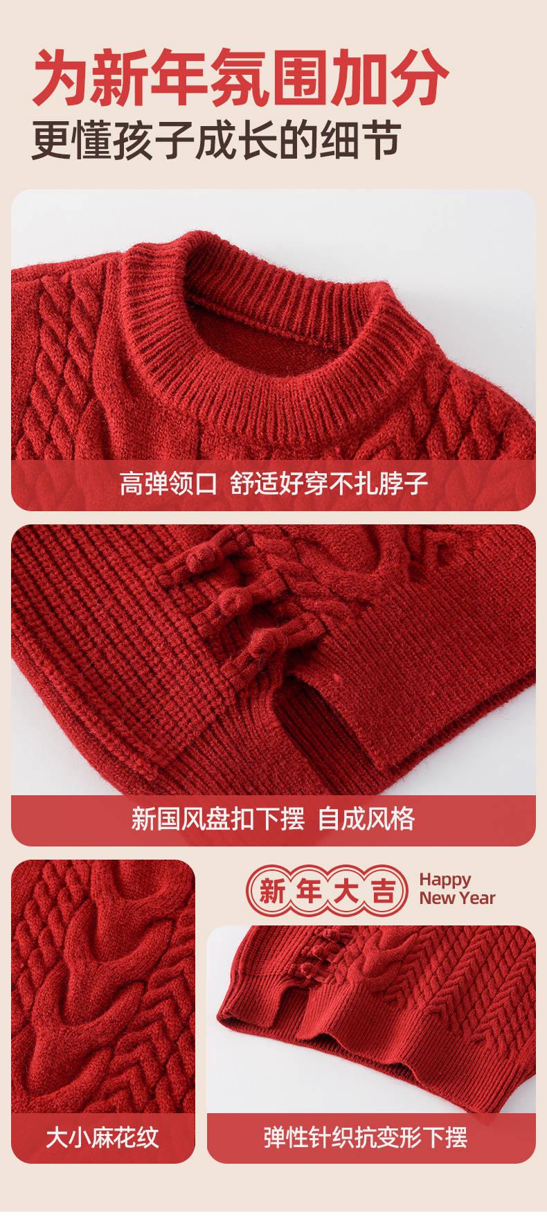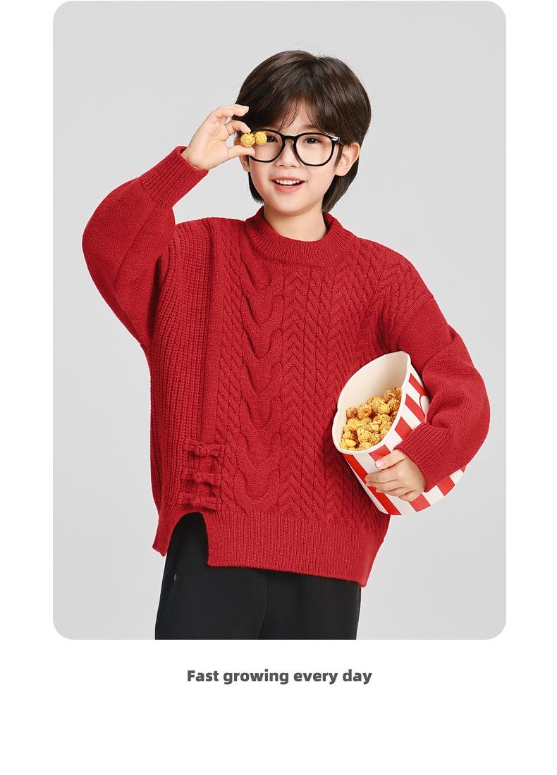 男童加厚毛衣2025冬装新款秋冬款儿童男孩圆领蓬松加厚保暖打底衫
