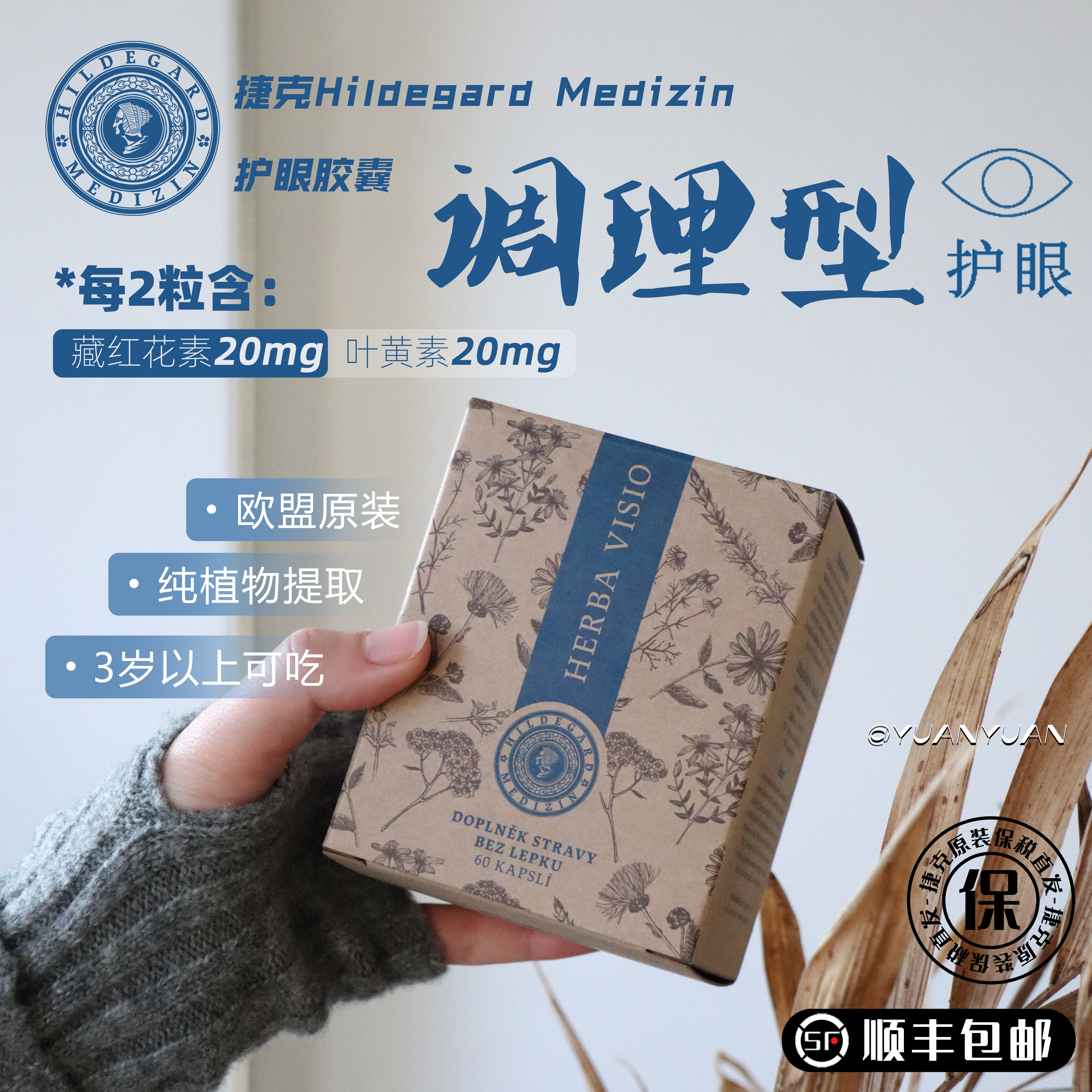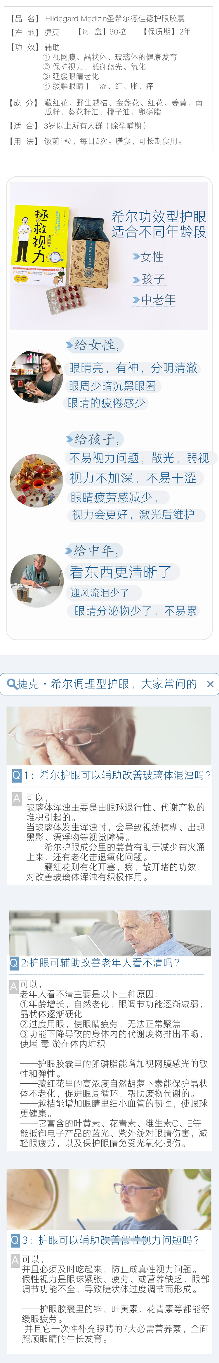 调理型护眼!儿童成人均可!捷克Hildegard Medizin护眼胶囊60粒!藏红花加强眼部循环力,胡萝卜素/叶黄素/锌/维生素ACE/花青素/DHA等全方面补充眼营养!日期27年4月