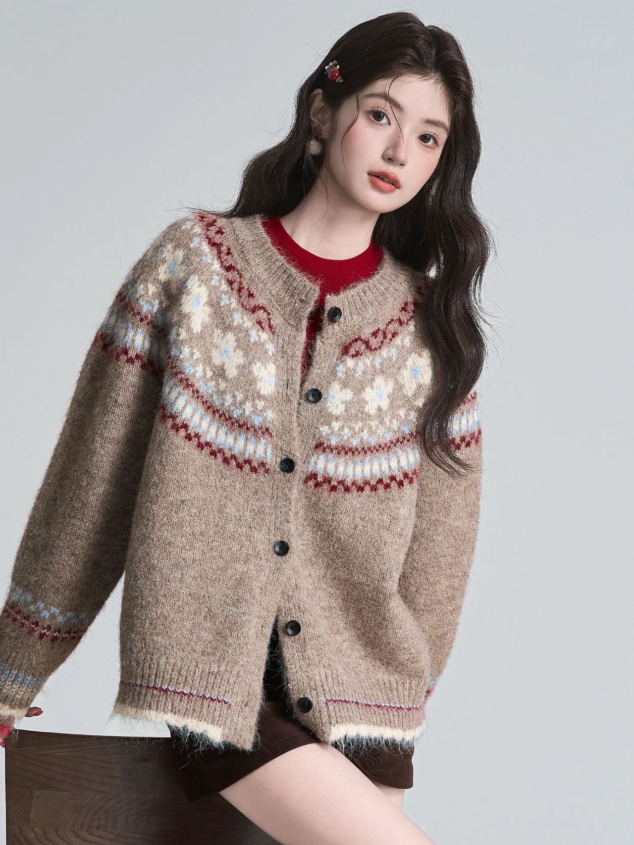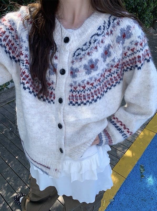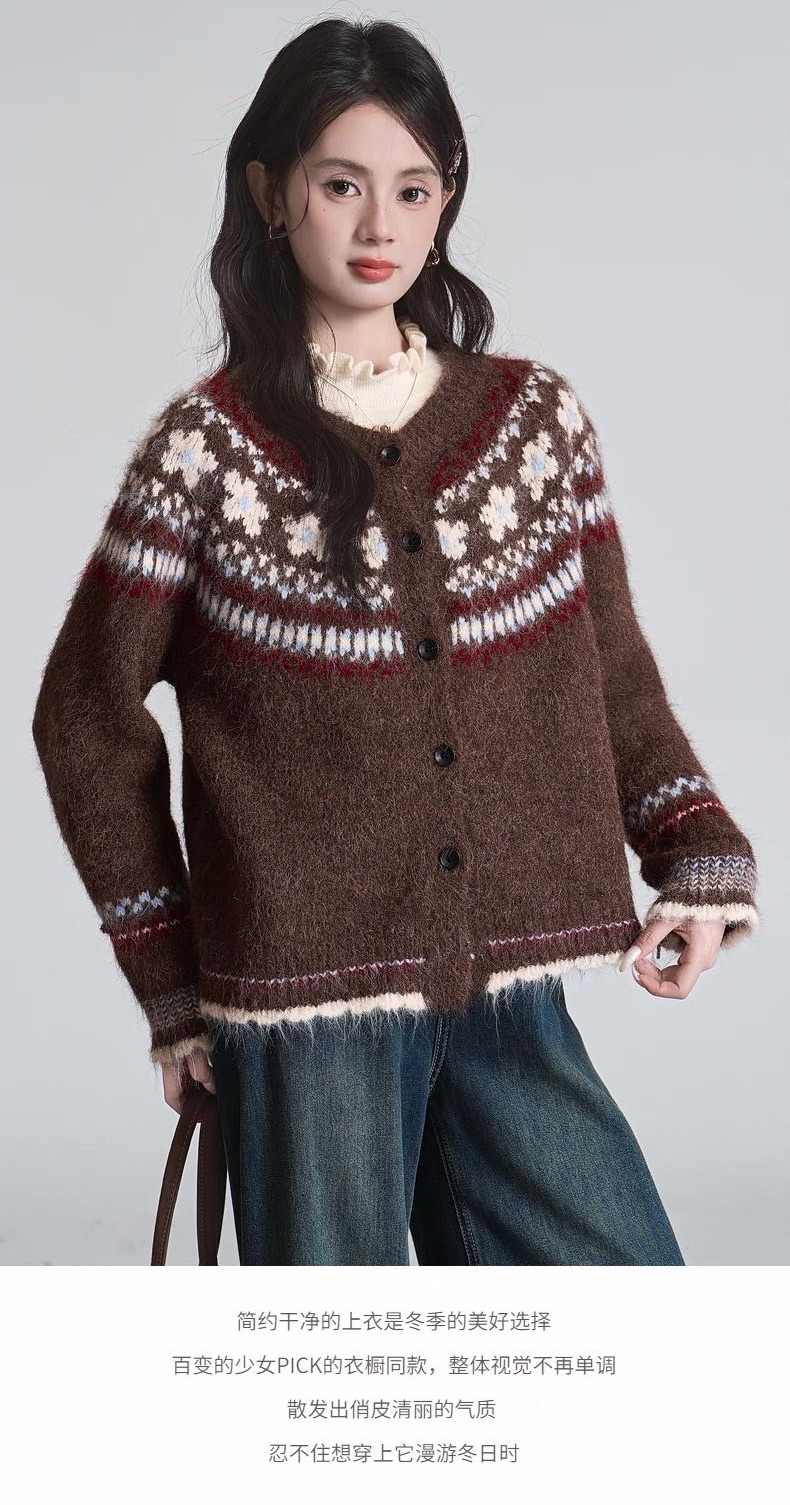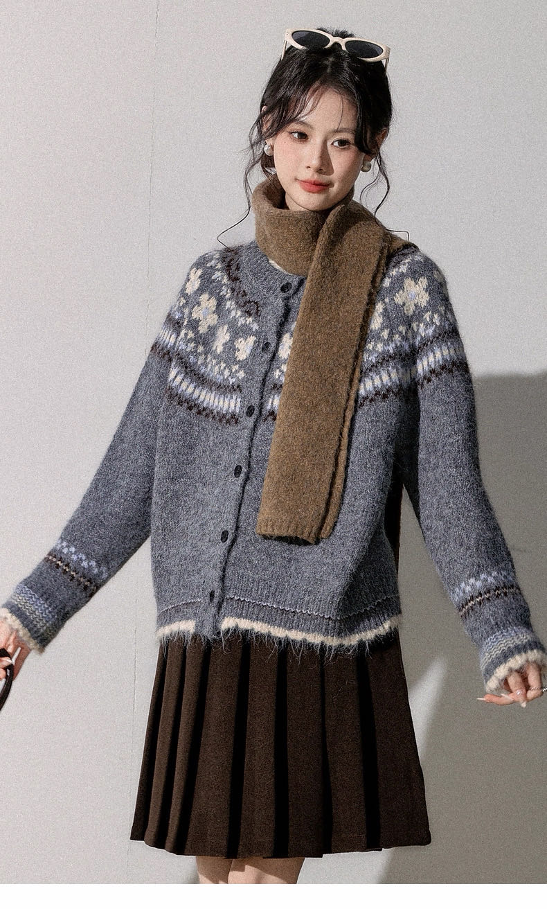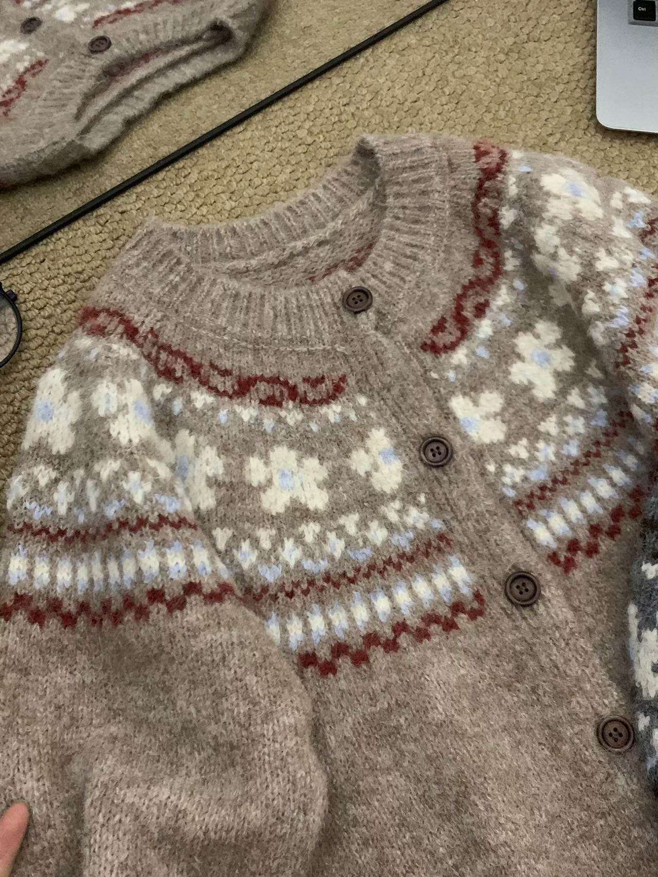 【羊毛慵懒风费尔岛开衫毛衣】软糯的针织质感搭配经典提花,穿上就是冬日里的氛围感美人,单穿叠穿都超百搭~
