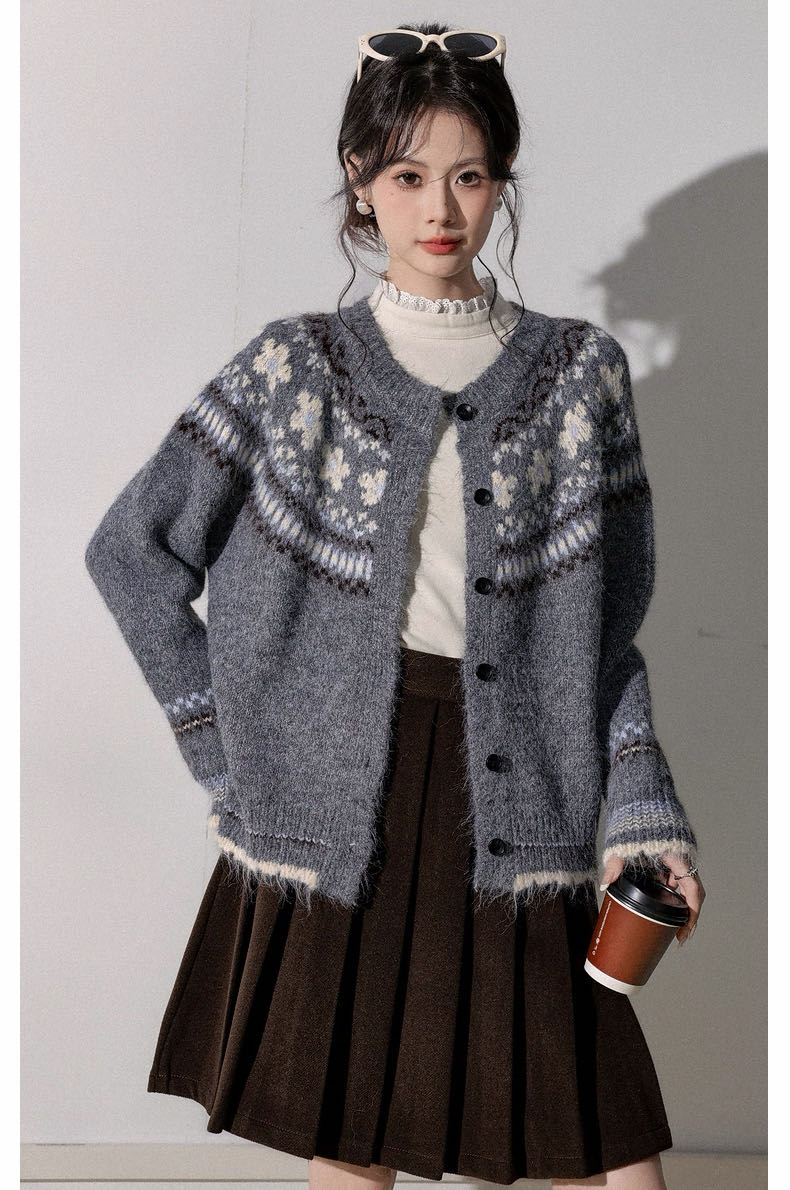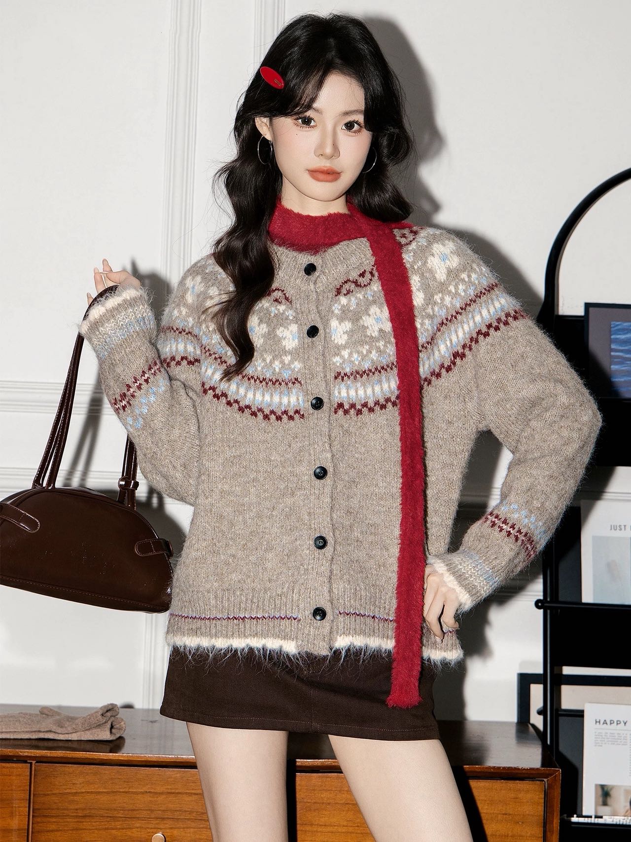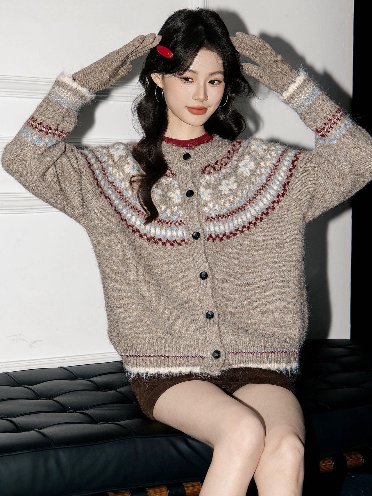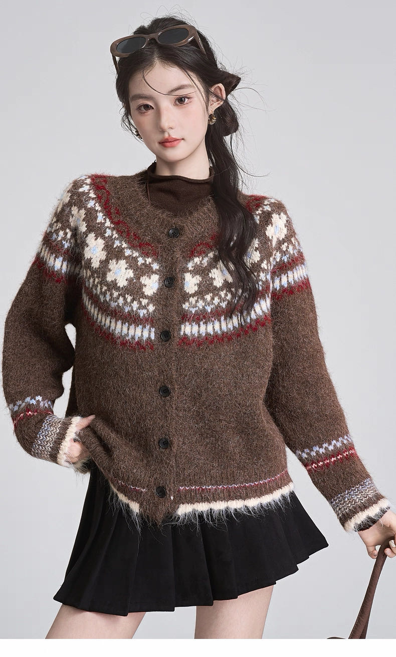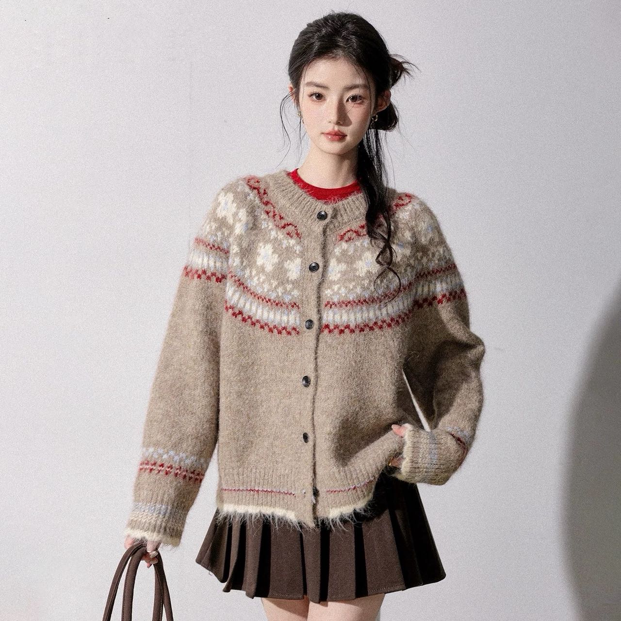 【羊毛慵懒风费尔岛开衫毛衣】软糯的针织质感搭配经典提花,穿上就是冬日里的氛围感美人,单穿叠穿都超百搭~