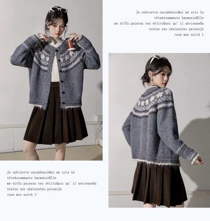 被这组费尔岛花纹开衫狠狠戳中审美!米白款清透温柔,自带初恋感;灰色款搭配同色系围巾,清冷松弛感拉满;卡其款暖调软糯,揉进了冬日的慵懒惬意;咖啡款复古浓郁,红棕撞色提花藏着精致小心机。软糯的马海毛质感亲肤又蓬松,经典的费尔岛提花自带北欧冬日风情,不管是搭百褶裙走甜妹路线,还是配牛仔裤走休闲风,四款色系都能轻松hold住不同穿搭场景,承包整个秋冬的氛围感穿搭~