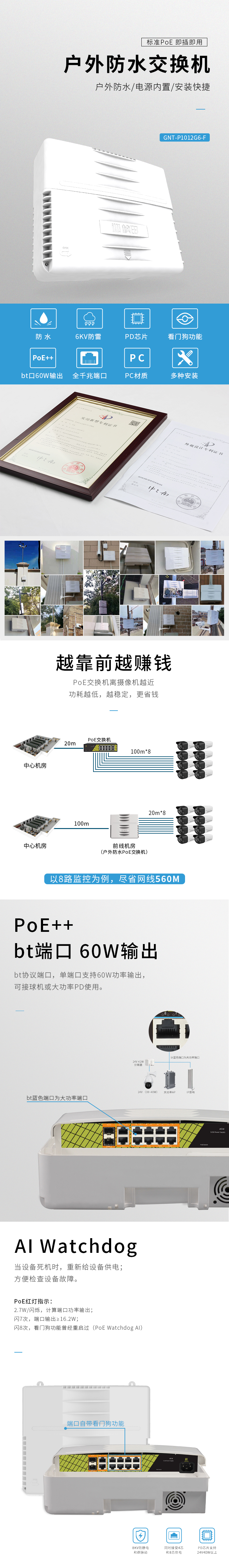 2光10电全千兆智能室外防水POE交换机P1012G6-F