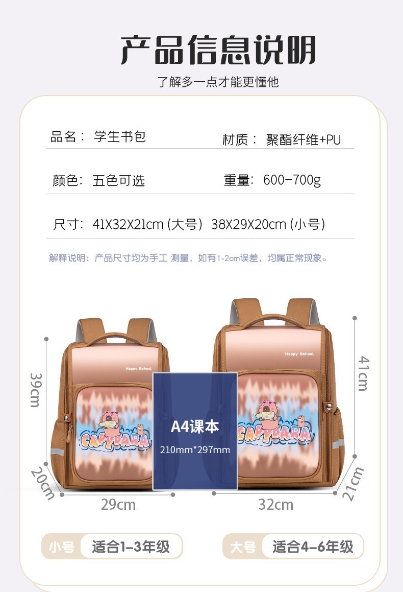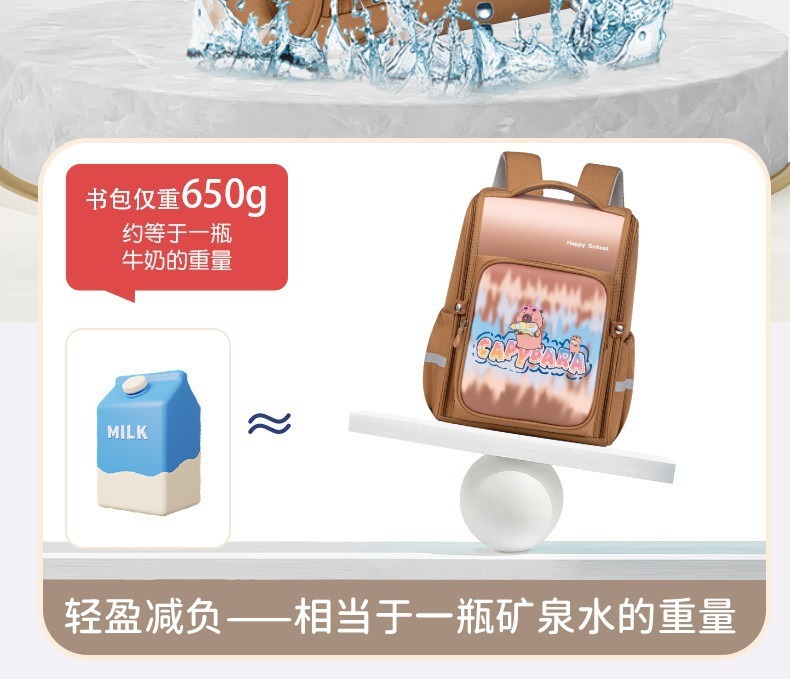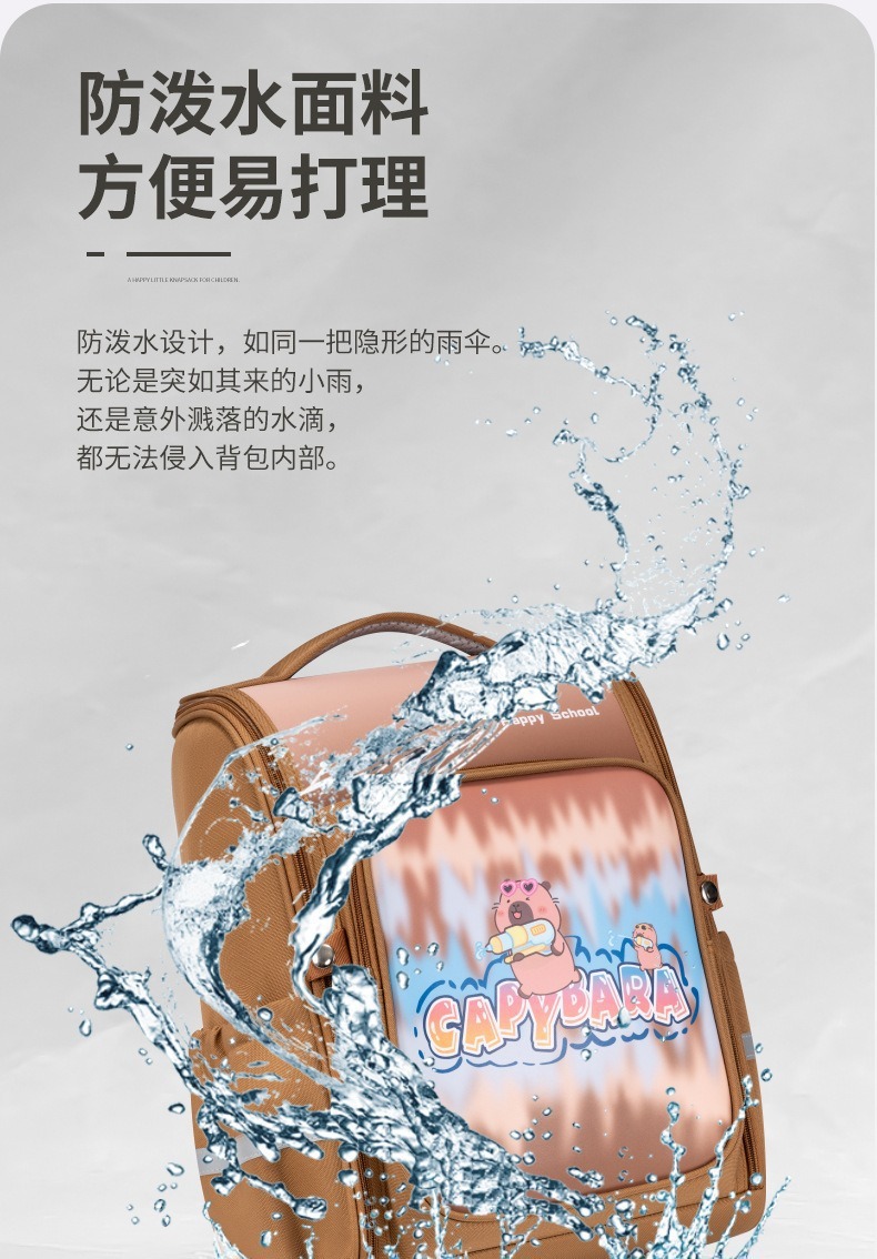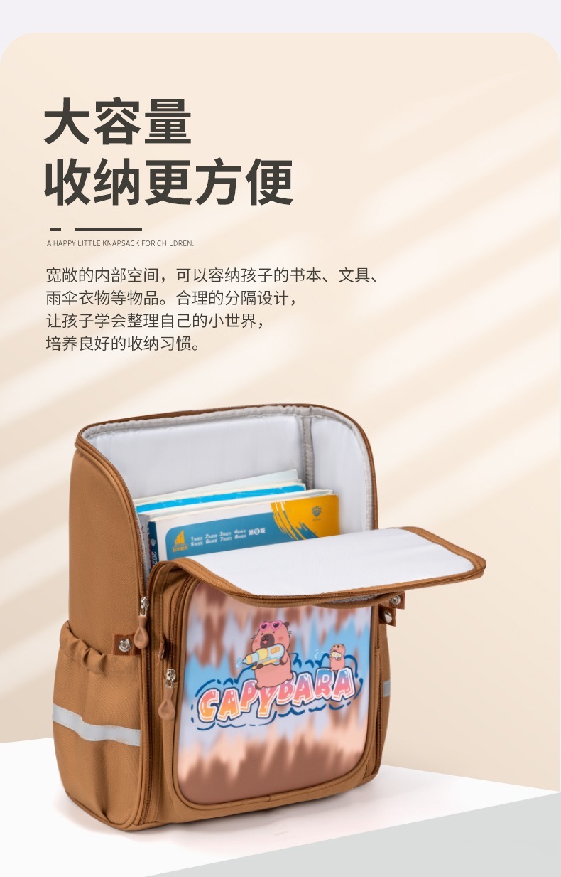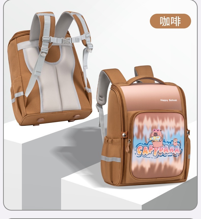 【大容量!透气靠背】新款卡皮巴拉pu皮小学生书包1-3-6年级大容量双肩包儿童背包。ry