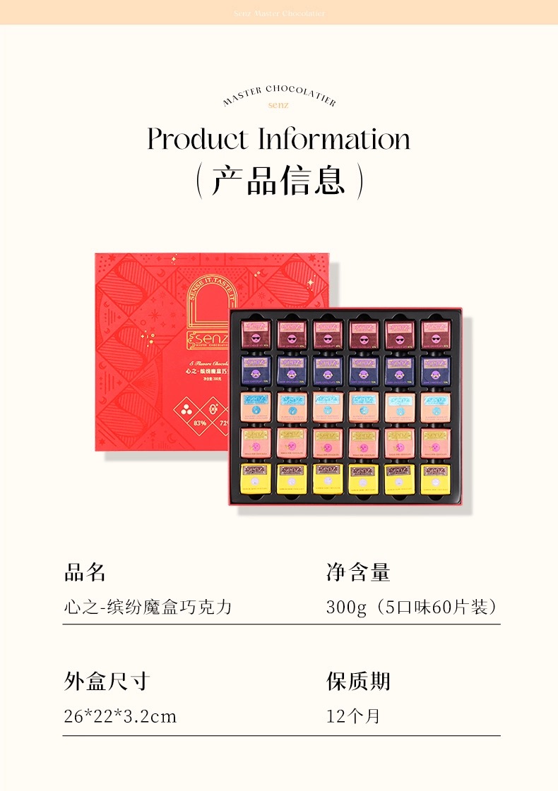心之SENZ【情绪魔盒18粒】六种口味铁盒装黑巧组合装