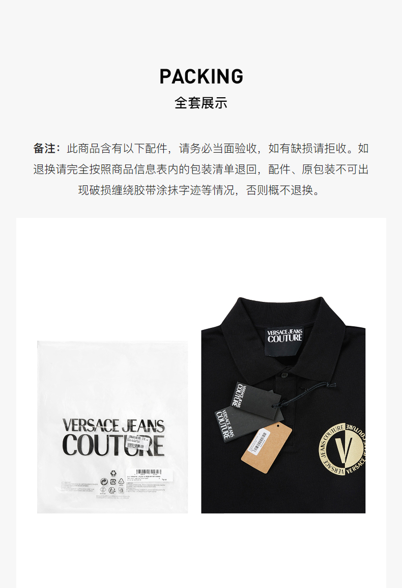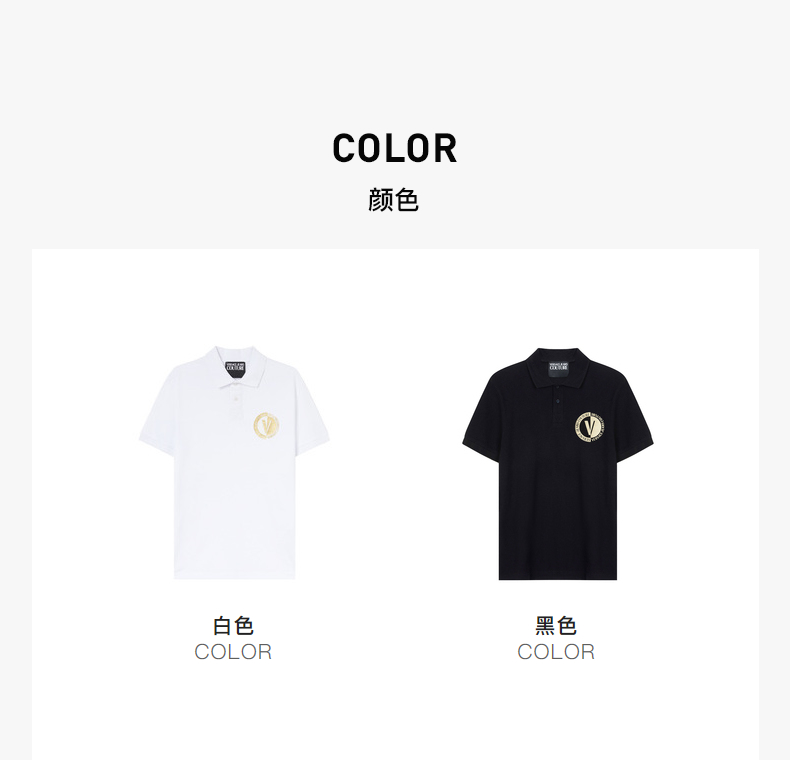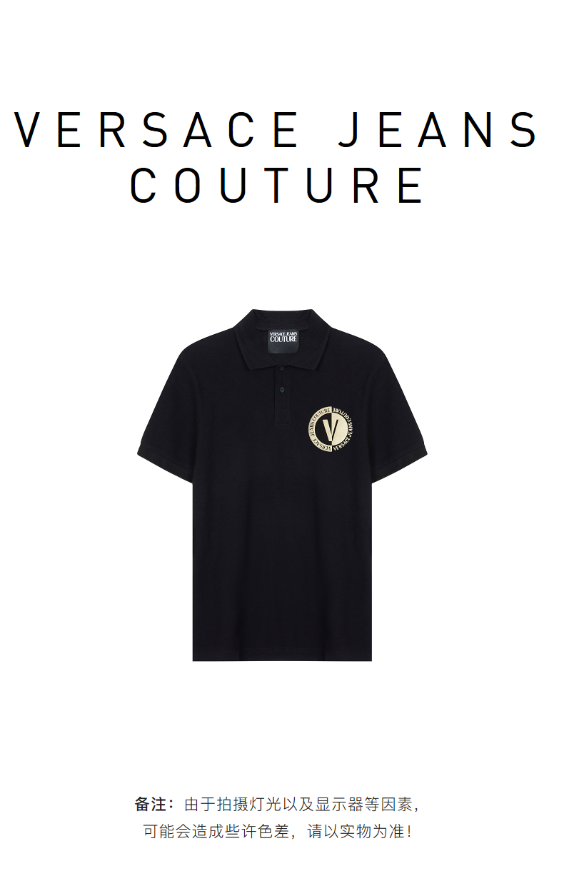 VERSACE JEANS COUTURE 范思哲 男士烫金V字徽标短袖POLO衫 74GAGT10 CJ01T