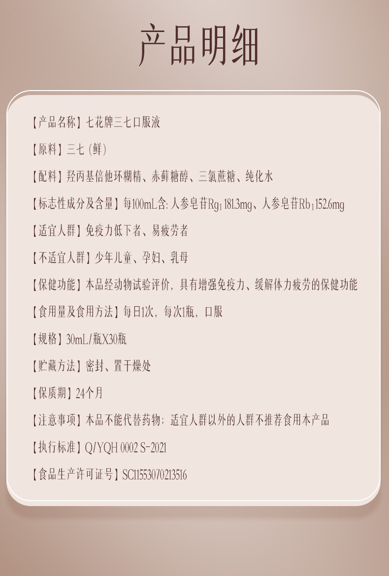 【官方正品】云南白药七花牌三七口服液30ml*30瓶礼盒装三七原浆鲜萃液增强免疫力缓解体力疲劳鲜三七植萃