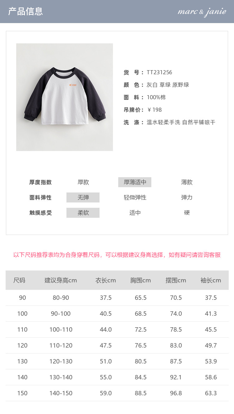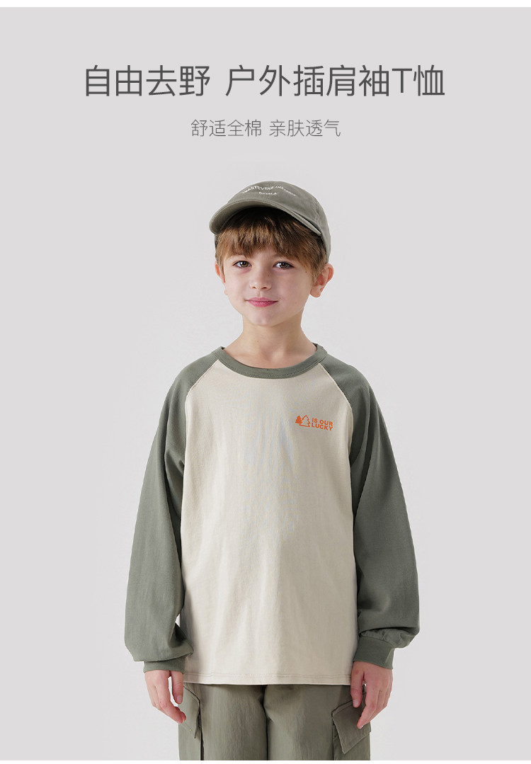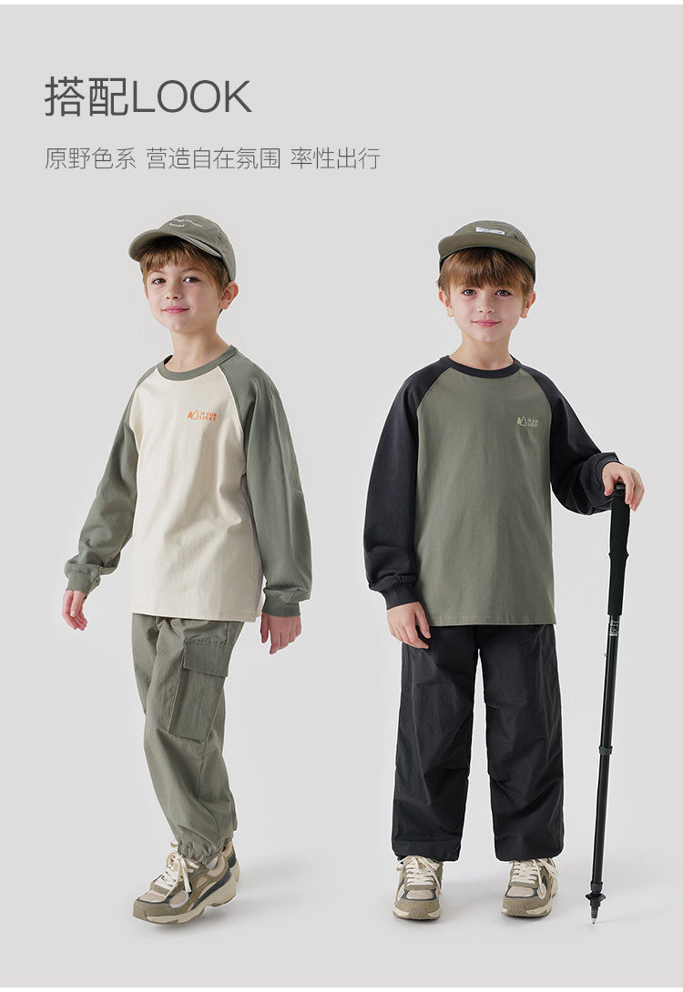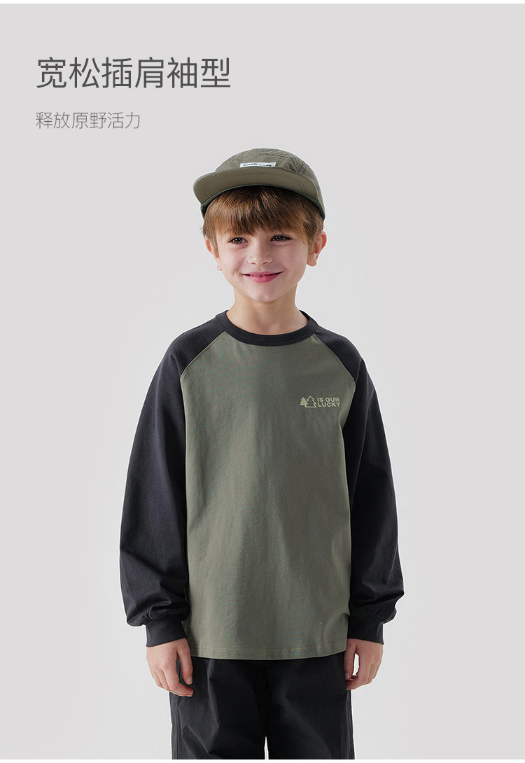 【户外风】马克珍妮秋装新款 男童全棉拼色长袖T恤儿童上衣231256