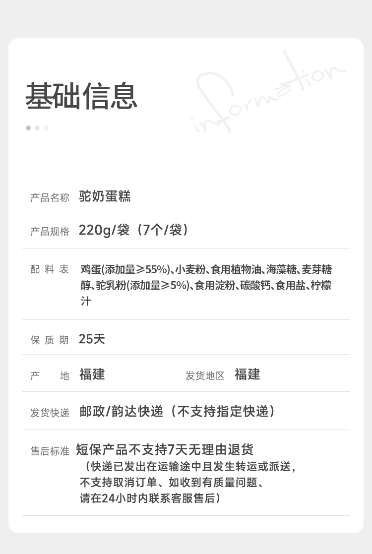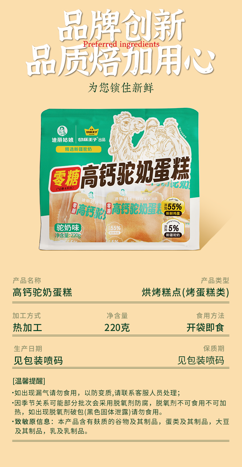 【新疆0糖高钙驼奶蛋糕】现做现发 新鲜短保 口感清甜 蛋香回味AA