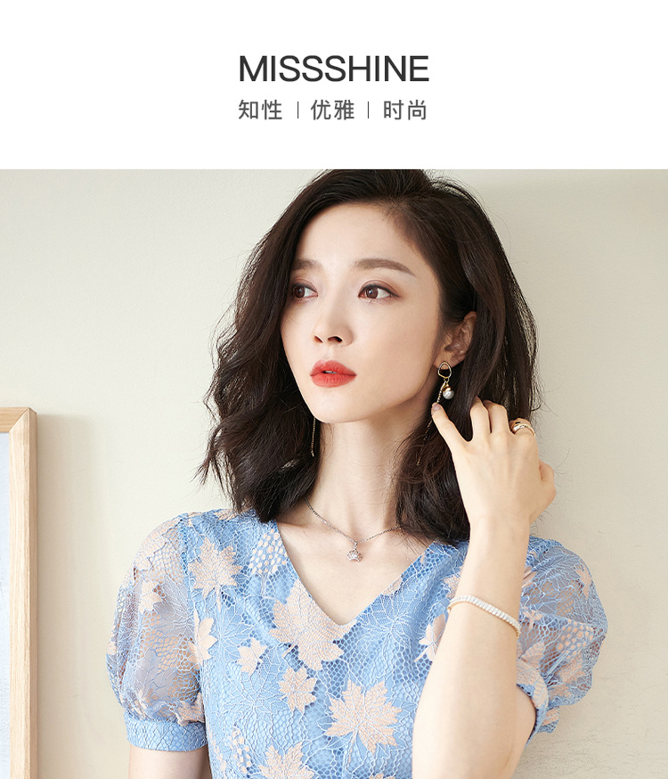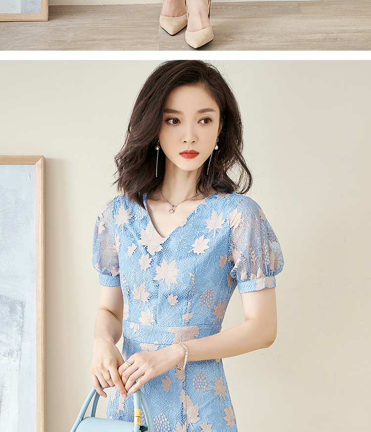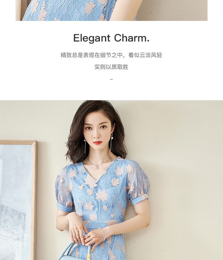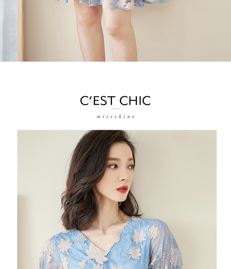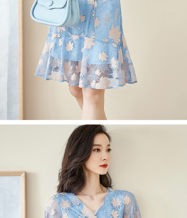 米思阳夏季新款时尚名媛气质荷叶边蕾丝裙修身显瘦连衣裙0900
