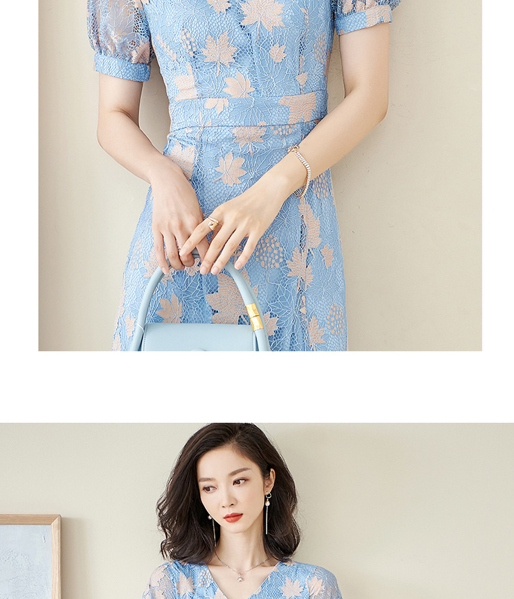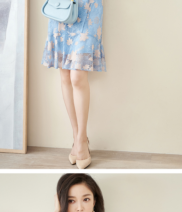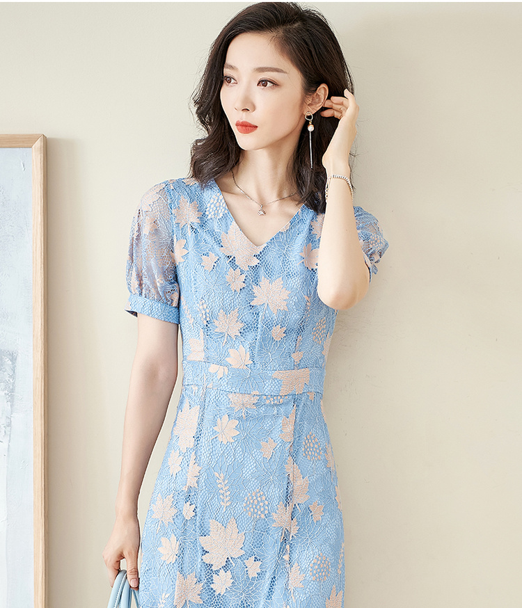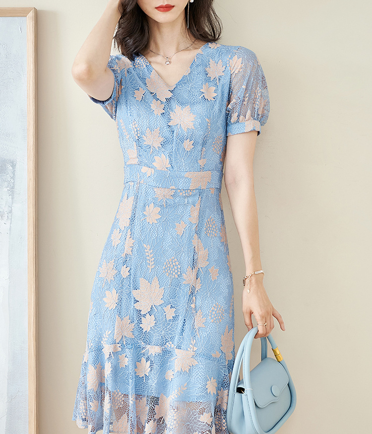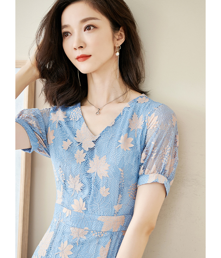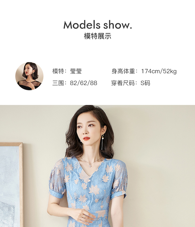 米思阳夏季新款时尚名媛气质荷叶边蕾丝裙修身显瘦连衣裙0900