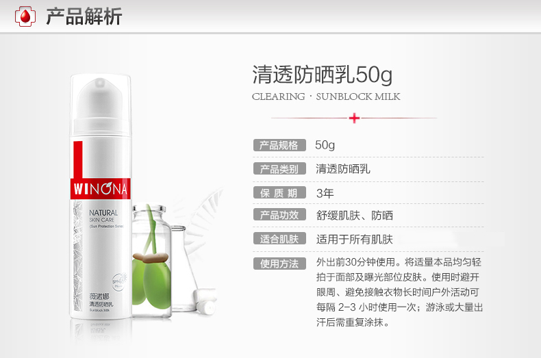 薇诺娜 | 清透防晒乳SPF48 PA+++ | 防晒 防紫外线 脆弱肌肤保湿防晒乳