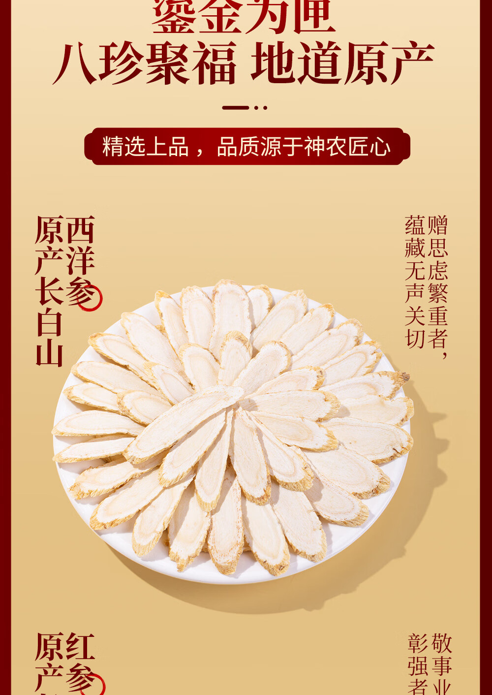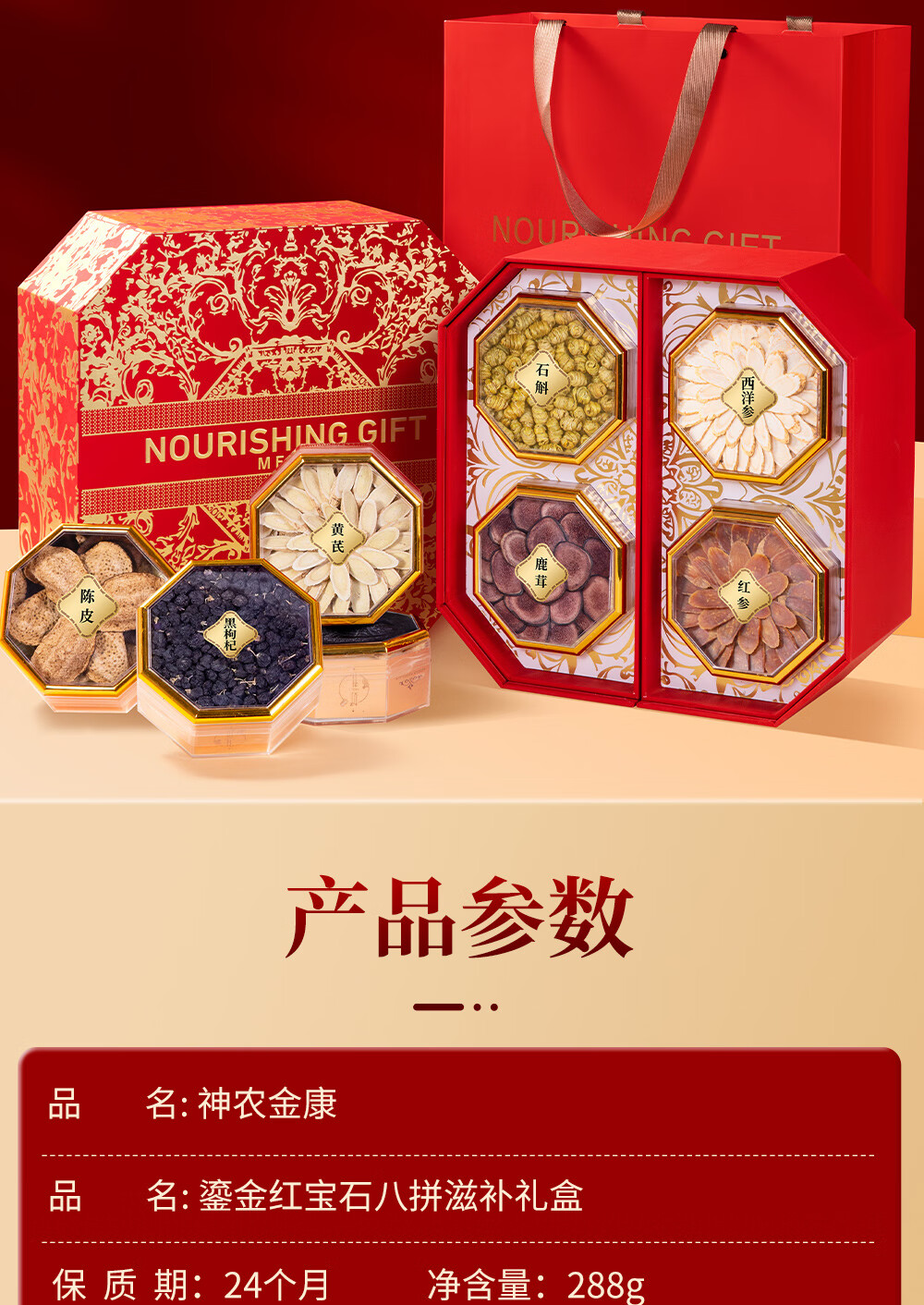 神农金康西洋参鹿茸片滋补八拼礼盒288g送父母 中秋补品 礼盒送礼送长辈