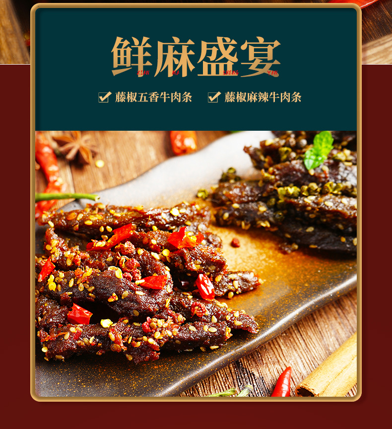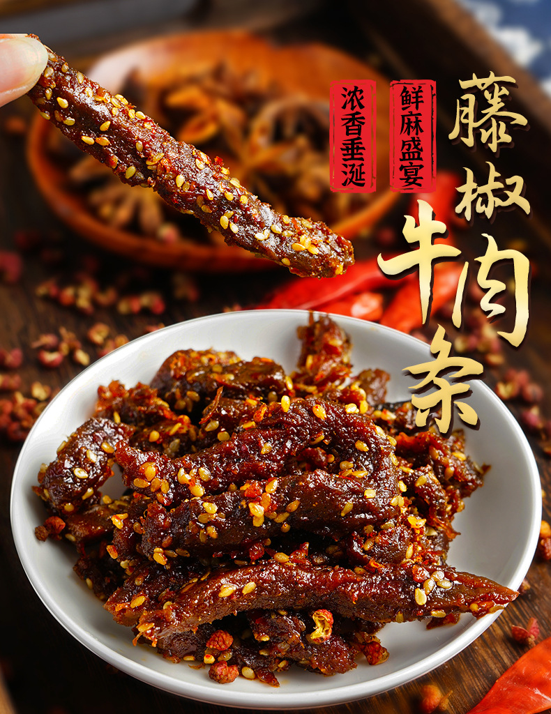 【鲜麻浓香垂涎藤椒牛肉条】冷吃即食麻辣五香牛肉,干川味熟口感韧道有嚼劲,2款口味风味好吃食网红零食追剧解馋QQ