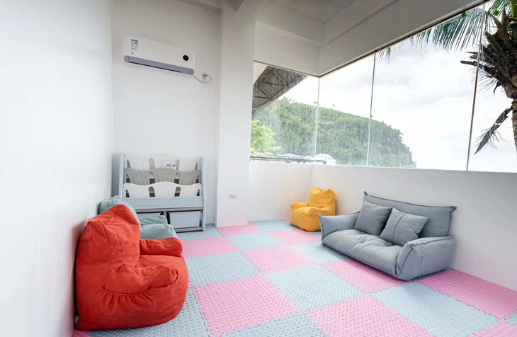 独立的儿童房,儿童沙发地垫,玩具,付费儿童托管服务。