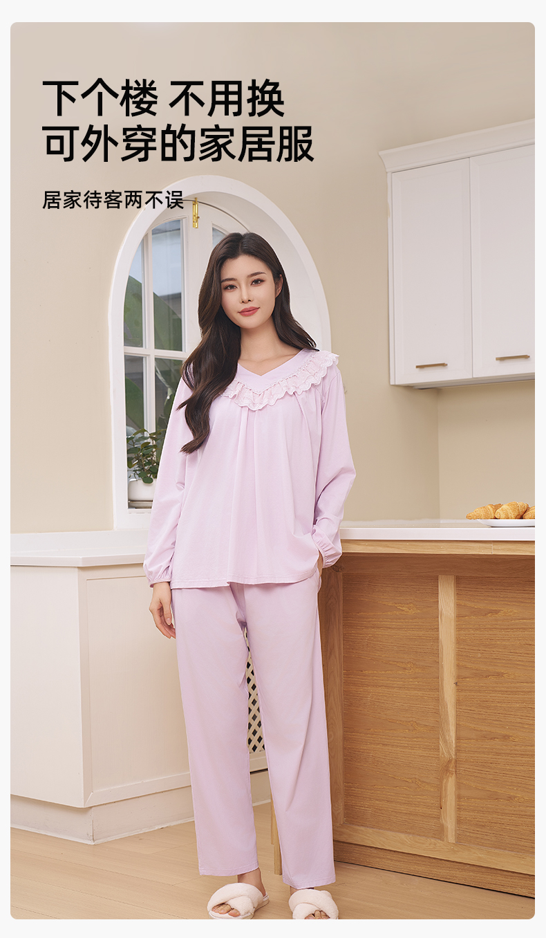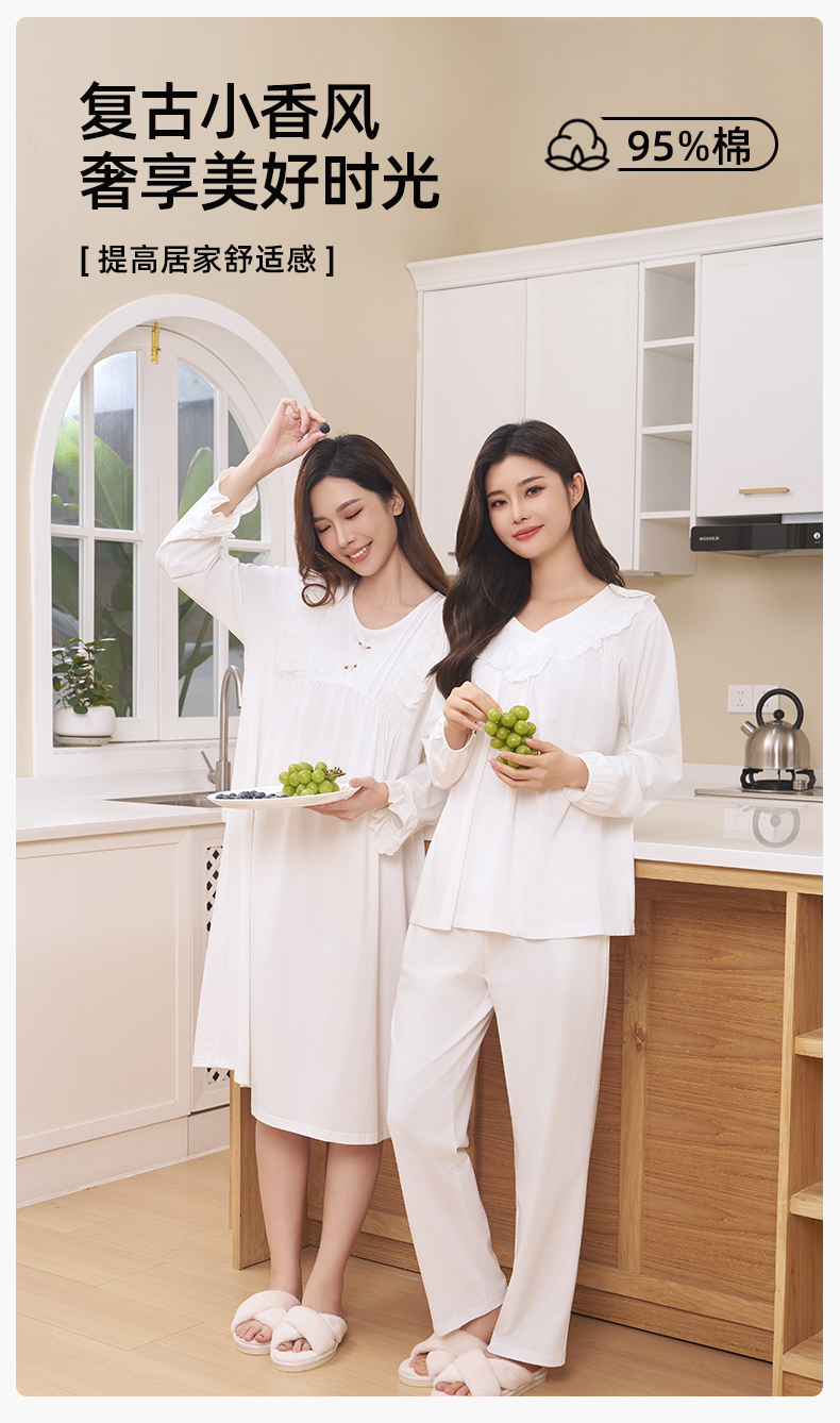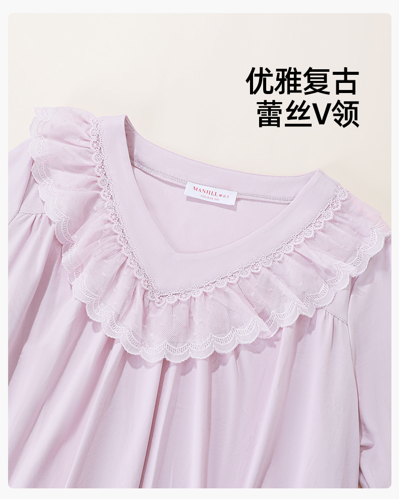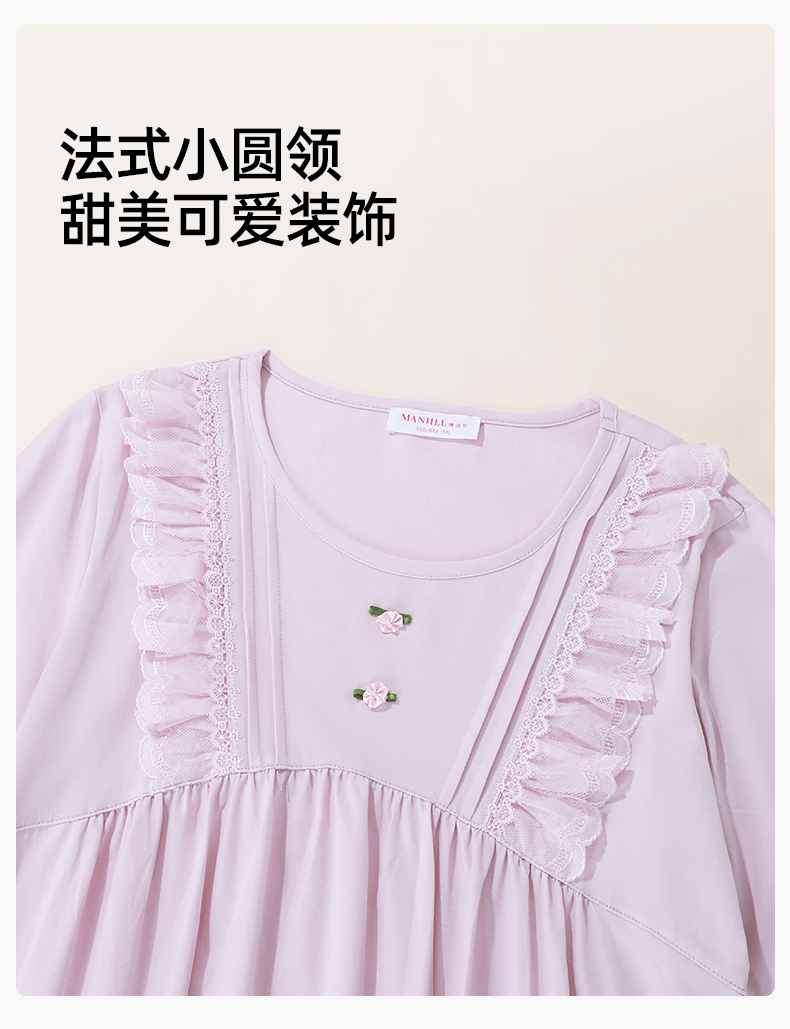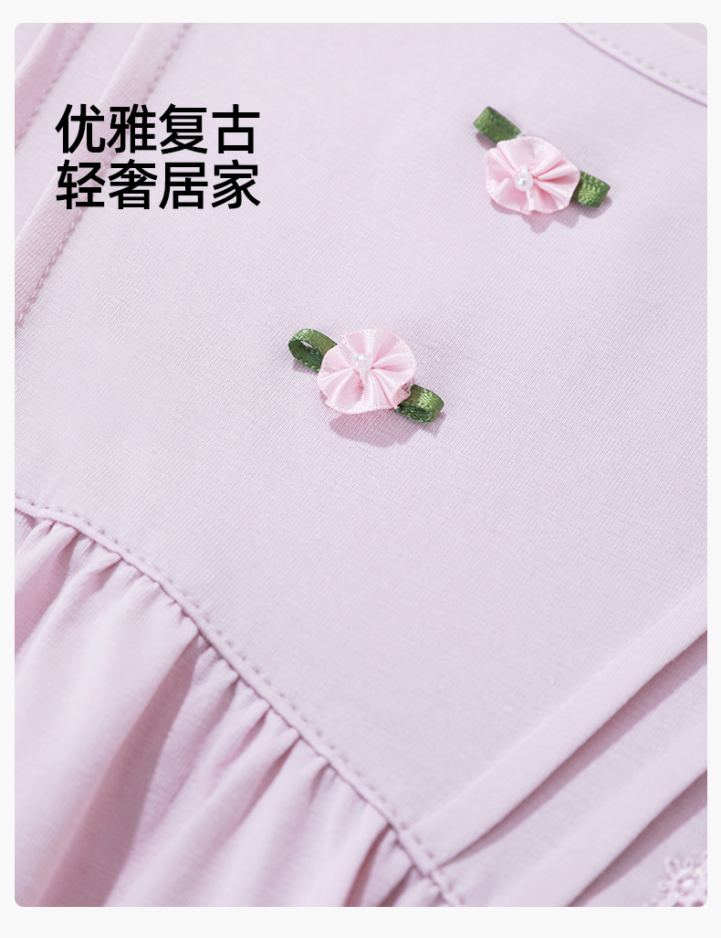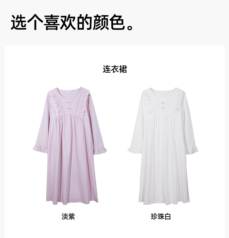 【商场同款】熳洁儿 纯棉女士家居服复古公主风连衣裙圆领套头长袖24703222/24703221