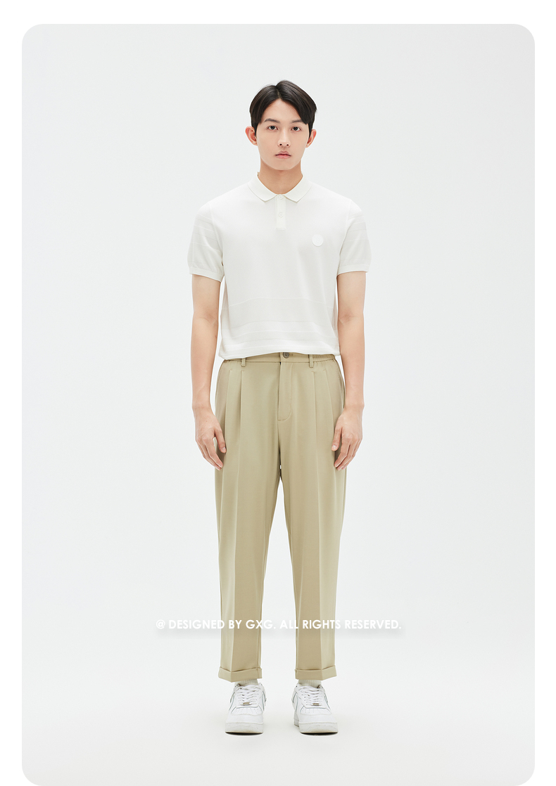 GXG男装 双色精致绣花休闲宽松圆领短袖T恤男生上衣 24年夏季热卖