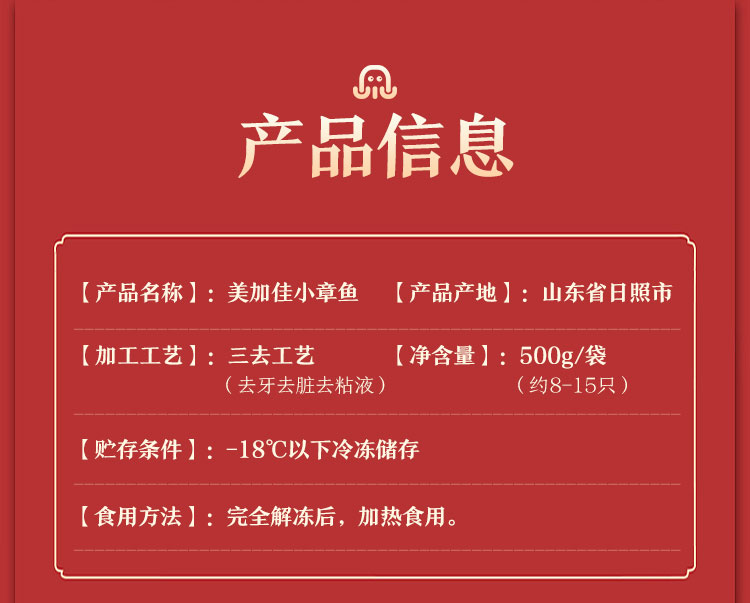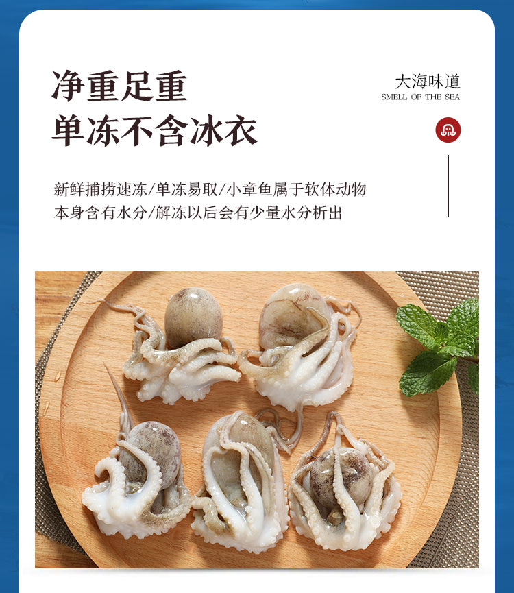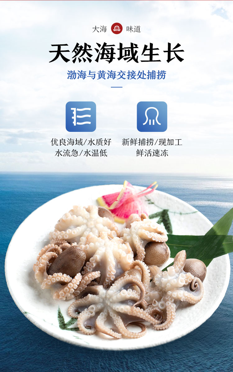 美加佳 冷冻三去小章鱼 八爪鱼 500g 火锅烧烤食材 国产海鲜