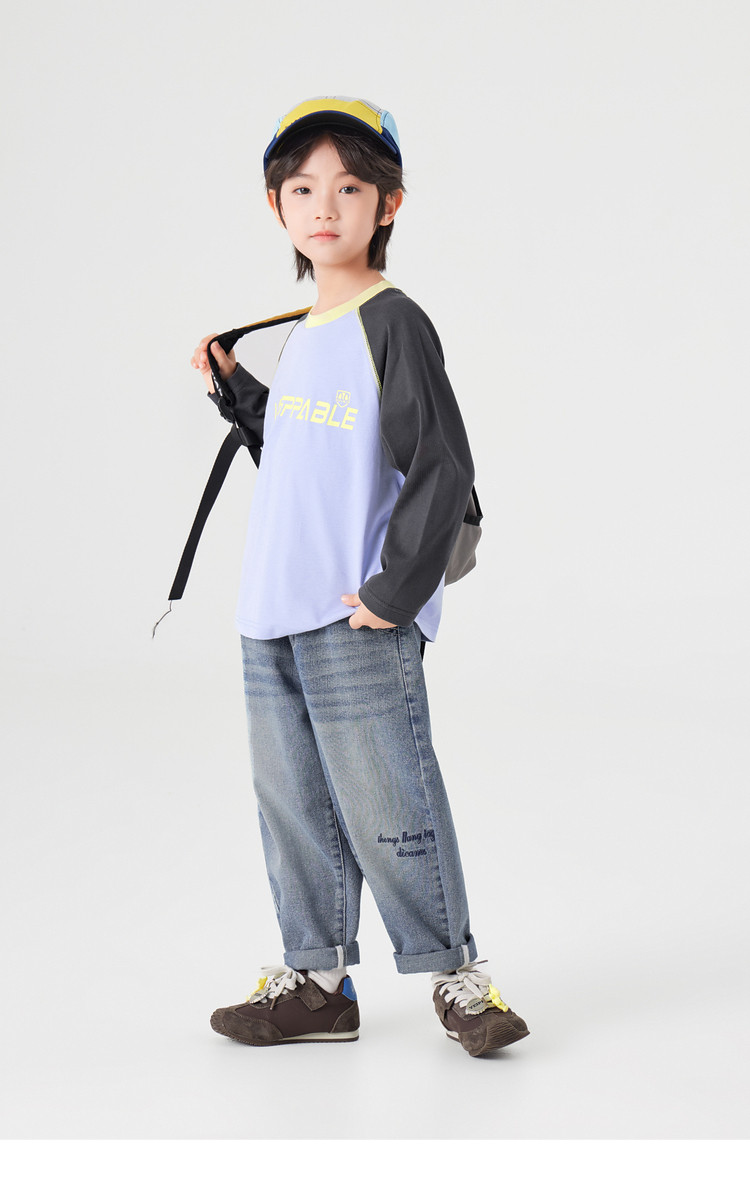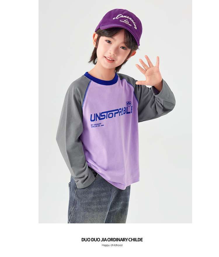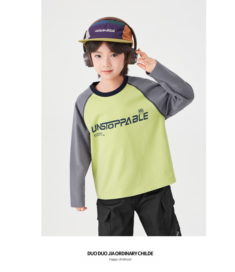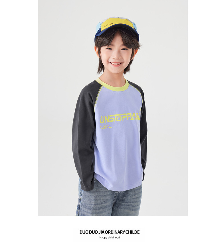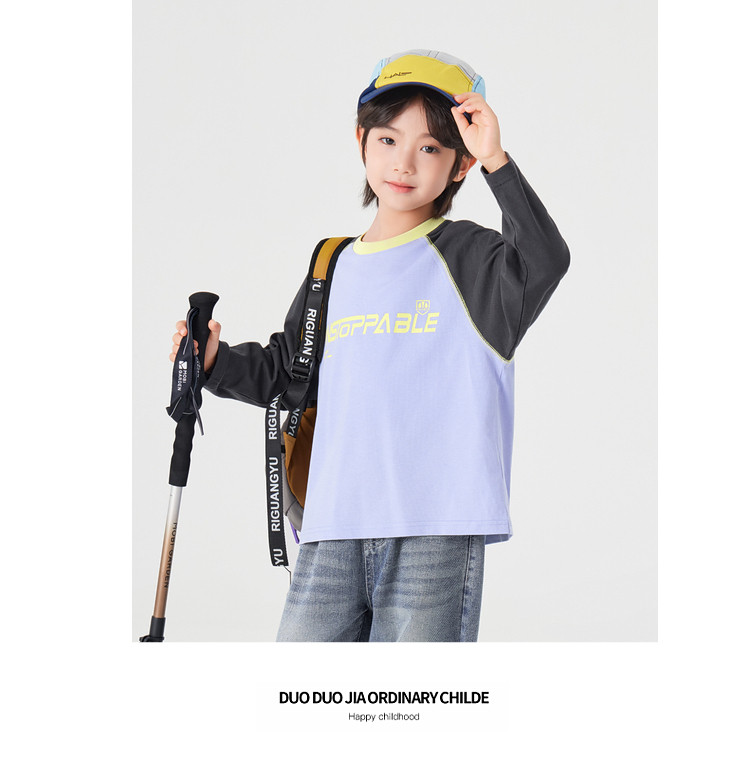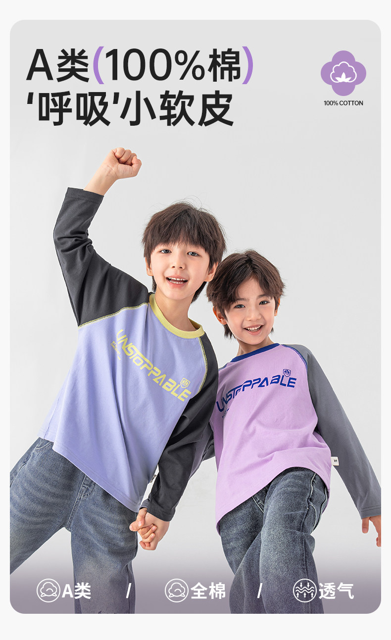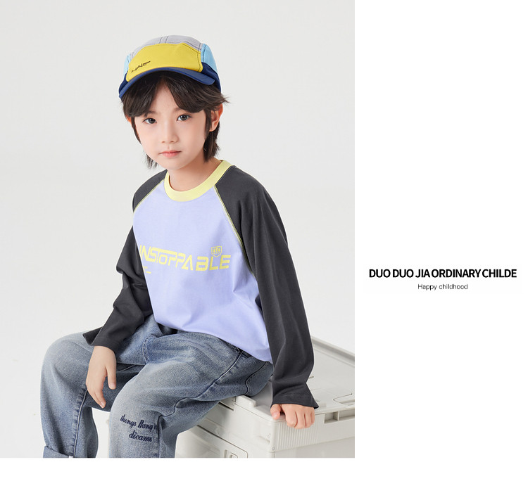 【件件底价,童装双倍积分】多多家男童长袖T恤纯棉春秋季2026春装新款儿童男孩字母印花上衣11436