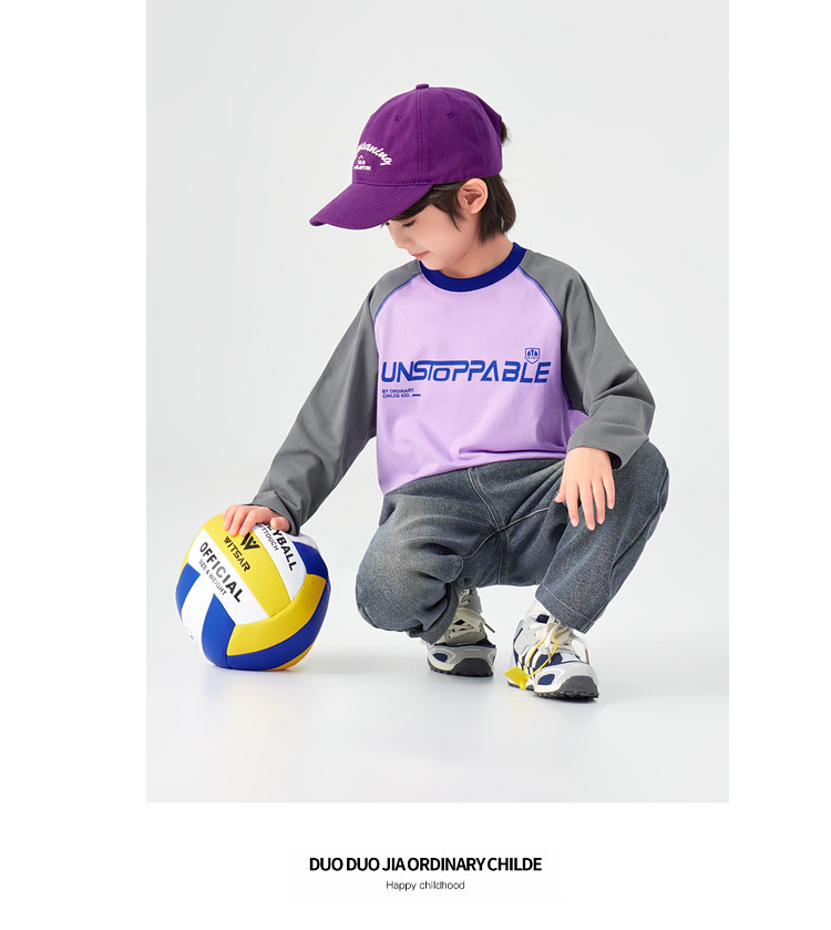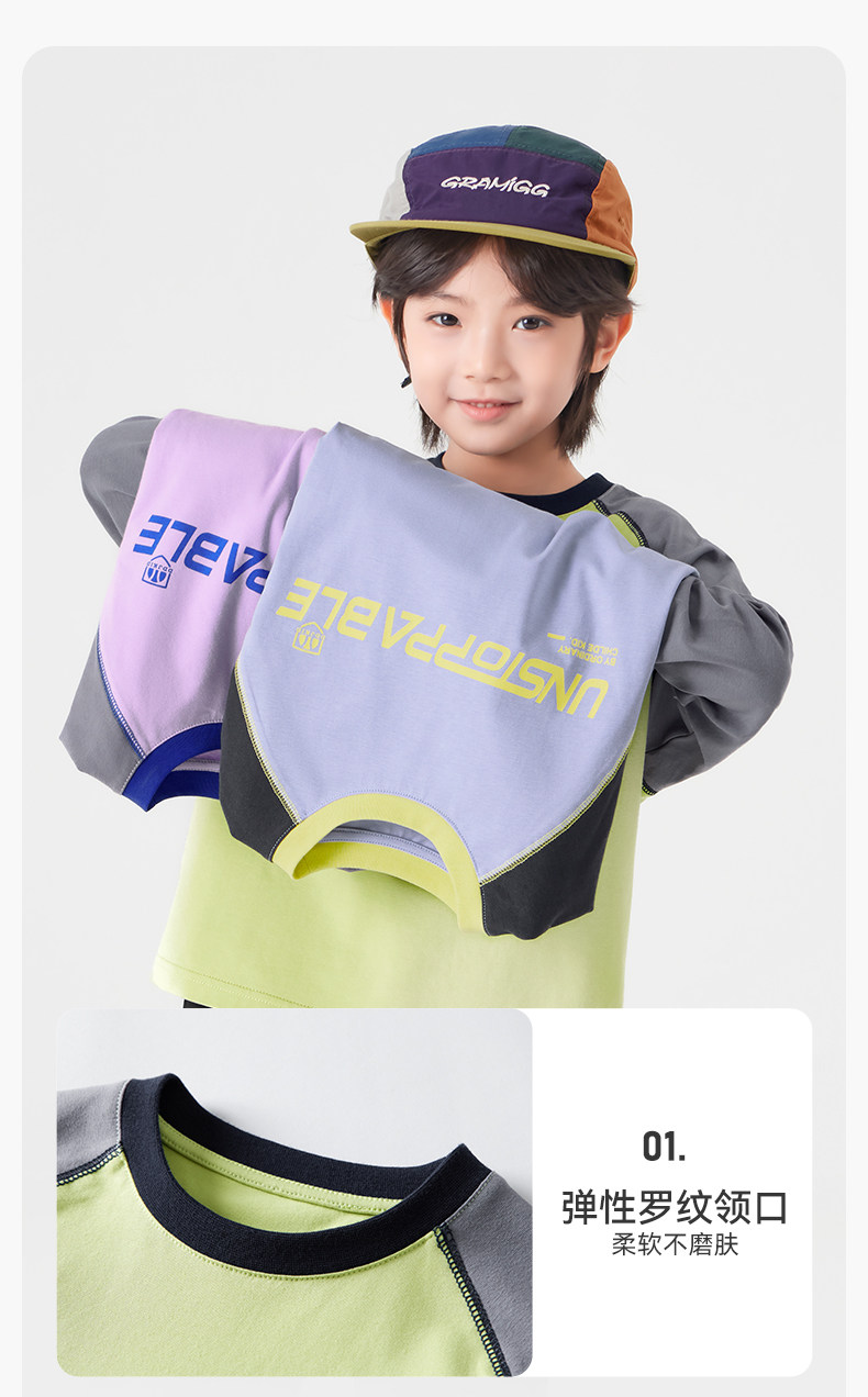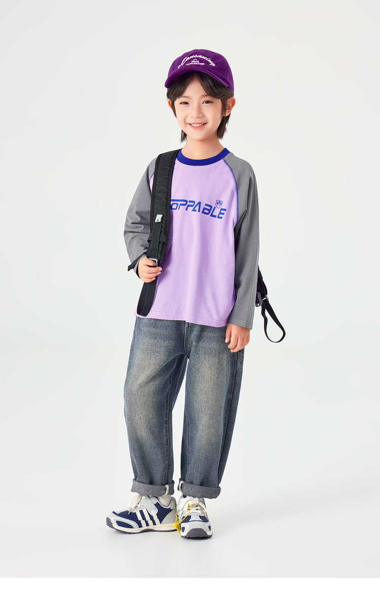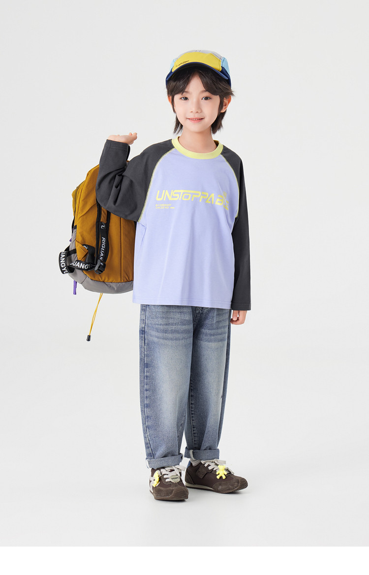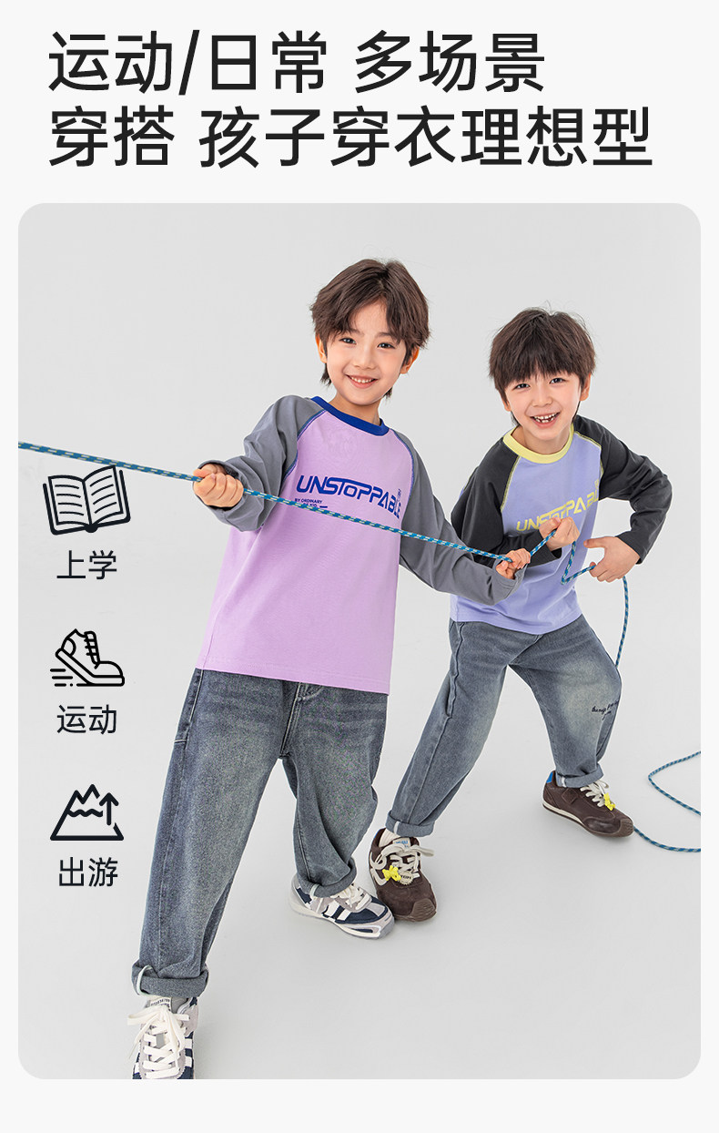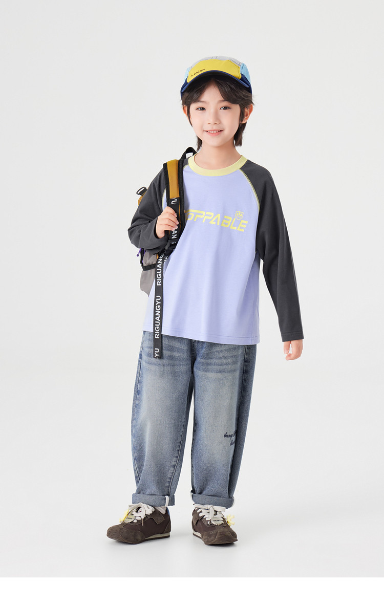 【件件底价,童装双倍积分】多多家男童长袖T恤纯棉春秋季2026春装新款儿童男孩字母印花上衣11436